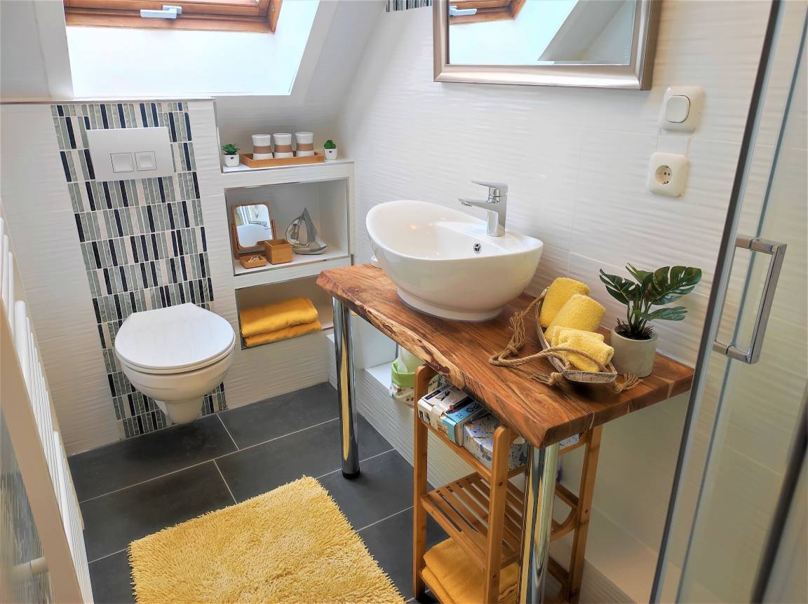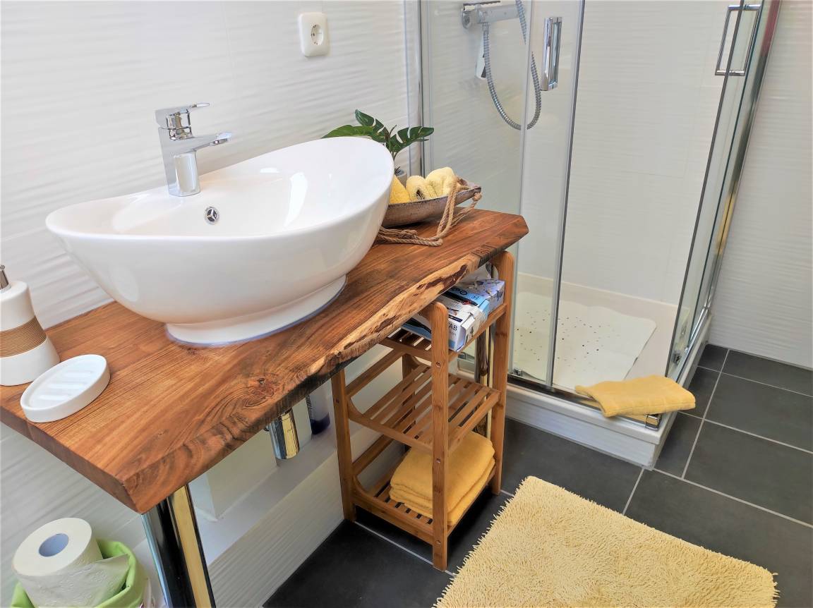 Das Bad ist mit einer Dusche, Waschbecken, einem WC und einem großen Fenster ausgestattet. Für Sie steht bereit: Ein Haar Fön, diverse Kosmetikartikel wie Kosmetiktücher, Ohrenstäbchen, Toilettenpapier, Reinigungspads sowie Badreiniger. Die Ferienwohnung ist eine Allergiker- und Nichtraucherwohnung. Haustiere sind nicht erlaubt.