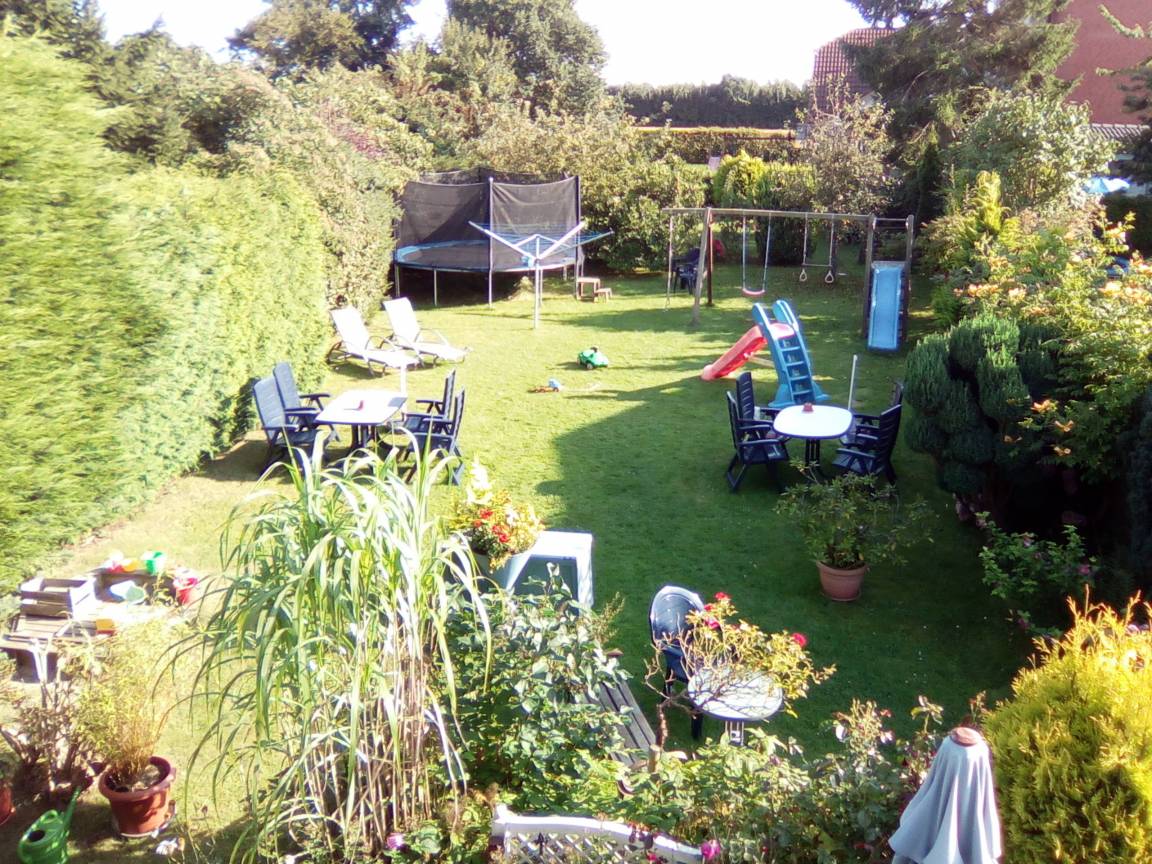 Gr. Garten mit Spielgeräten u. Sitzecken. Trampolin. Grill.
