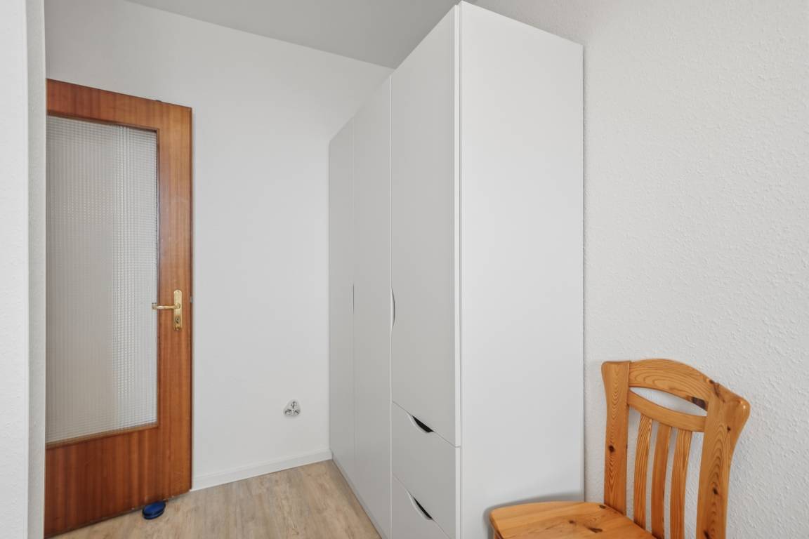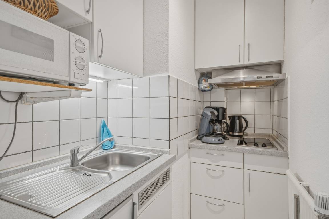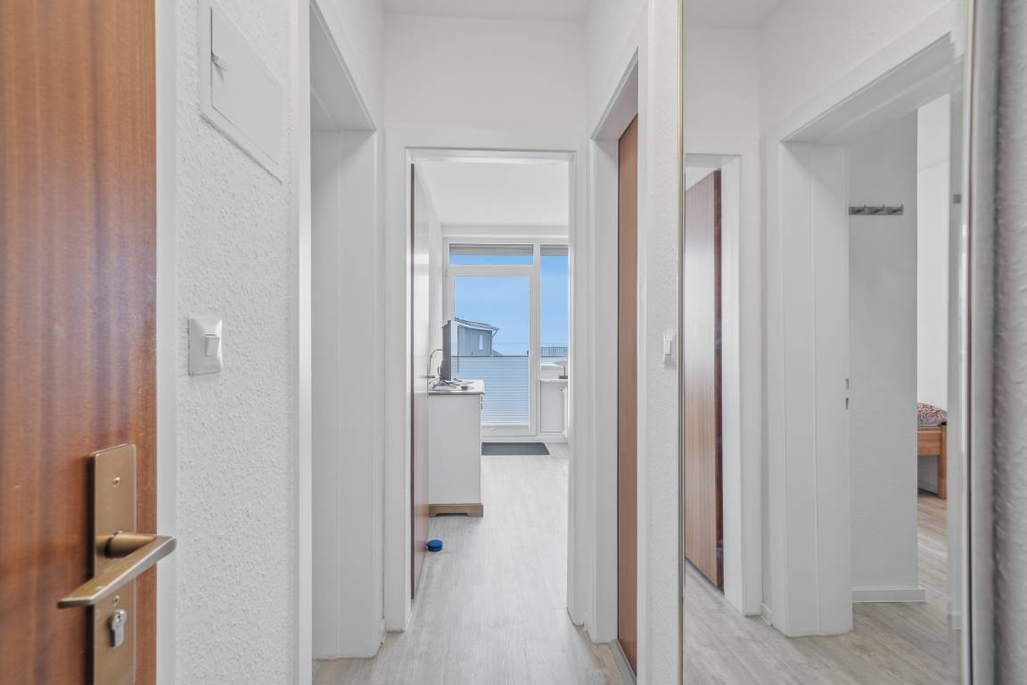Die Ferienwohnung befindet sich im 1. Obergeschoss eines kleinen Mehrfamilienhauses und hat eine Größe von 31 qm.