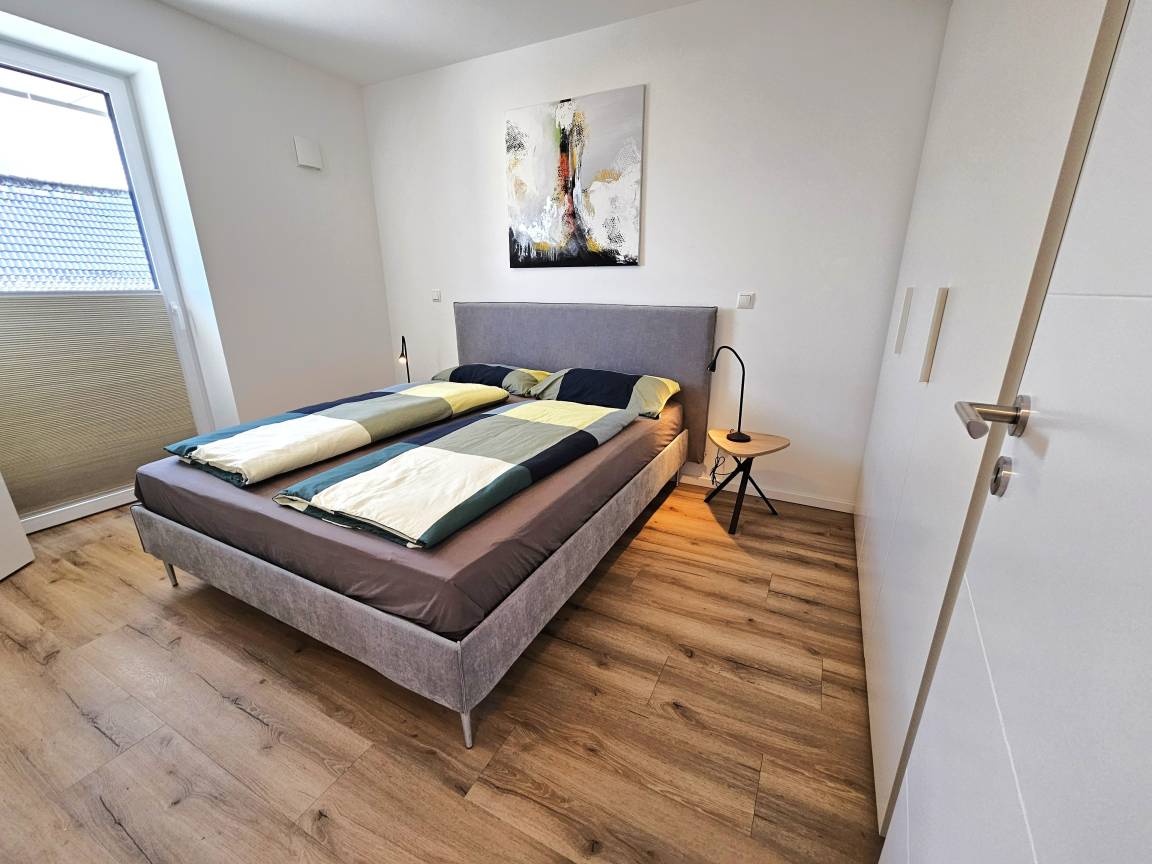 • Schlafzimmer: Das gemütliche Schlafzimmer verfügt über ein Doppelbett (2 x 80 x 200 cm), zwei Nachttische mit Nachttischlampen, einen geräumigen Kleiderschrank sowie Plissee für einen erholsamen Schlaf.