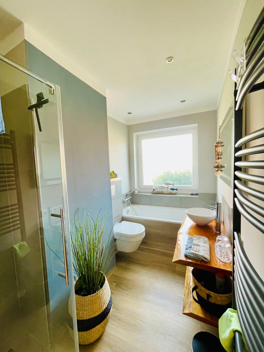 „Liebevoll ausgestattete Wohnung mit netter Begrüßung, am Waldrand gelegen und trotzdem sehr nah zum Strand. Ideal für Mensch und Tier :)“