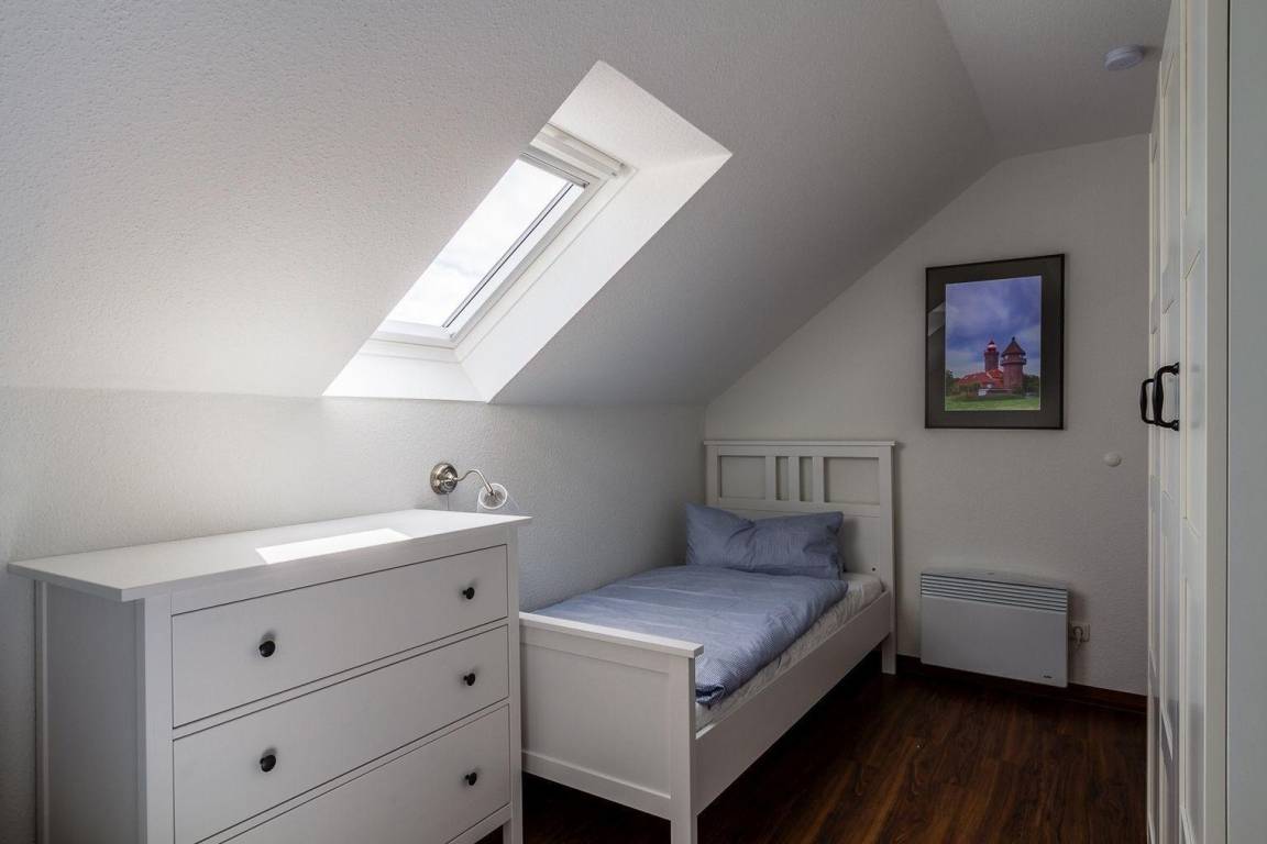 Die Ferienwohnung "Mour" ist ein Mittelreihenhaus, das über zwei Etagen verfügt und für bis zu vier Personen geeignet ist. Im Erdgeschoss befinden sich ein Eingangsbereich mit Garderobe, ein lichtdurchflutetes Wohn- und Esszimmer mit einer voll ausgestatteten Küche. Die Küche ist mit Geschirrspüler, Backofen, Mikrowelle und Waschmaschine ausgestattet. Ein helles Badezimmer mit Dusche, WC und Fenster rundet die Etage ab. Im Obergeschoss befinden sich ein Schlafzimmer mit einem Doppelbett (2 Matratzen á 90x200 cm) sowie ein weiteres Schlafzimmer mit zwei Einzelbetten (je 90x200 cm). Beide Schlafzimmer verfügen über Verdunkelungsrollos. Ein Kinderhochstuhl und ein Reisebett sind inklusive, ebenso wie ein PKW-Stellplatz. WLAN ist vorhanden. Ein Hund ist gegen Gebühr willkommen.