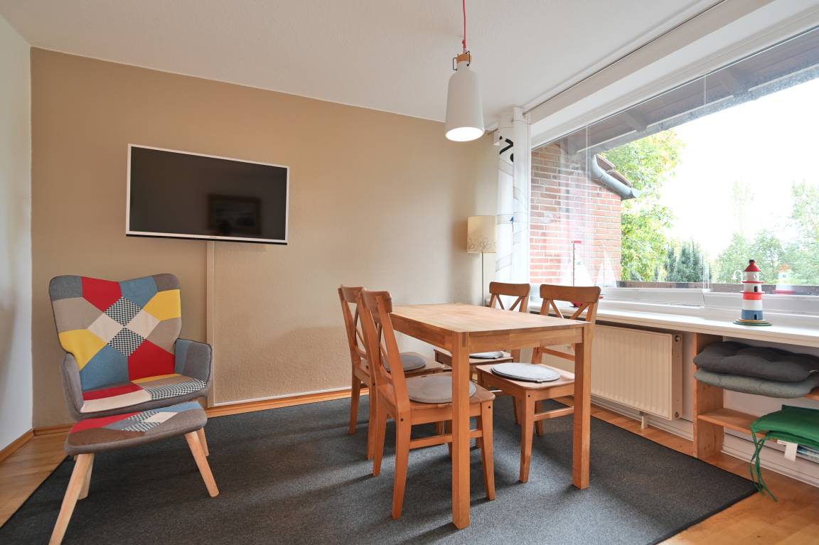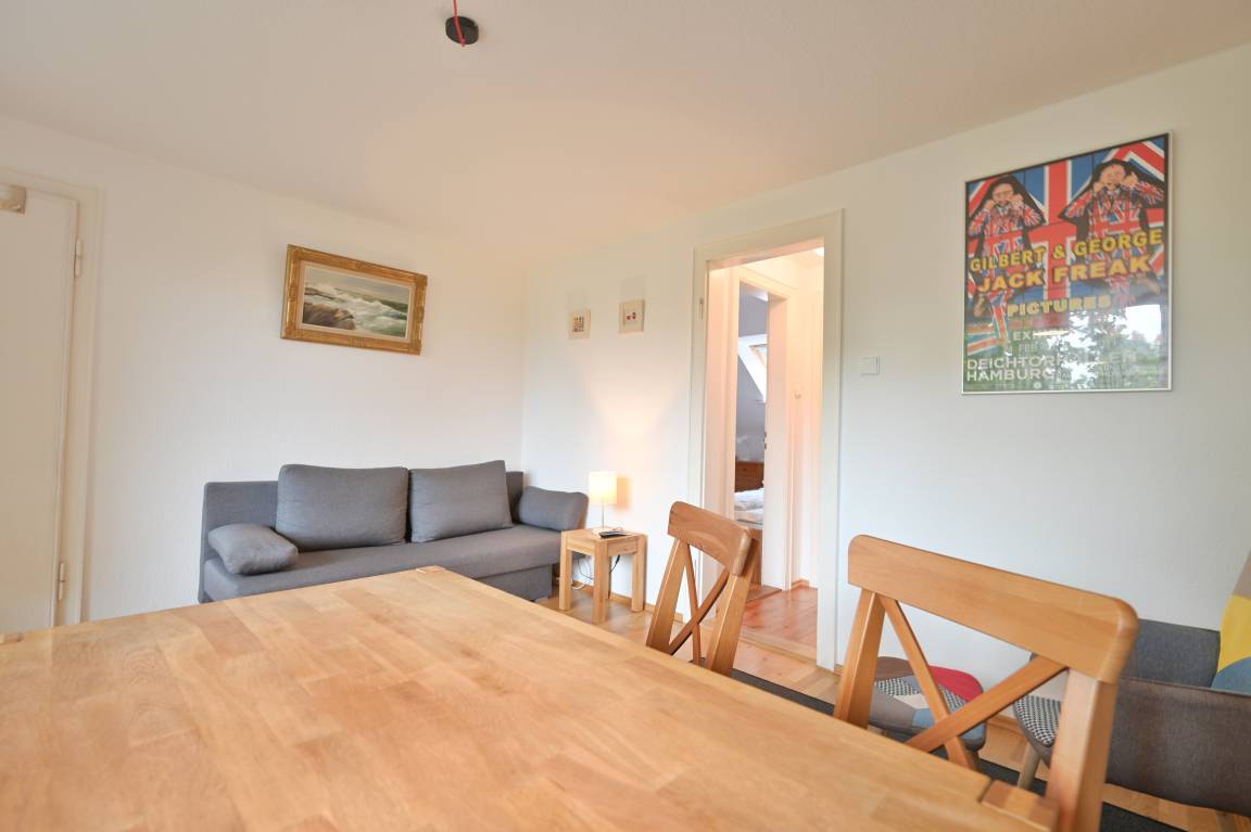 In herrlich ruhiger Kurparklage befindet sich diese kleine Ferienwohnung im 1. OG einer kleinen familiären Appartementanlage, mit nur fünf weiteren Wohnungen, die zum Teil ausschließlich von den Eigentümern genutzt werden. Die Ferienwohnung verfügt über zwei Zimmer und bietet bis zu vier Schlafplätze (Schlafzimmer mit zwei Einzelbetten, Wohnzimmer mit Schlafcouch). Im Wohnzimmer ist Echtholz-Eichenparkett verlegt, im Schlazimmer gleichfalls Eichenparkett und in Flur und Küche befinden sich Echtholzdielen. Die kleine separate Küche verfügt über eine Einbauküche mit E-Herd mit Cerankochfeld, Kühl-Gefrierschrank, Mikrowelle, Kaffeemaschine, Wasserkocher etc. Im Wohnzimmer gibt es einen Flachbild-Sat-Fernseher. Das Duschbad ist im Jahr 2019 grundlegend modernisiert worden inklusive neuer Fliesen und Fußbodenheizung.