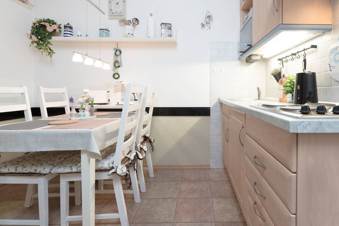 „Schöne Wohnung, super Lage! Leider etwas wenig Platz für vier Personen, vor allem, weil zu viel Deko im Weg steht.Das vierte Bett zum Rausziehen im Nebenzimmer haben wir nicht genutzt, weil dann kein Platz mehr im Zimmer blieb. Aber das Sofa war sehr bequem und super zum Schlafen. Die Wohnung war auf den ersten Blick sauber, Ecken wurden beim Putzen aber nicht mitberücksichtigt. Leider wurde das Kücheninventar nicht kontrolliert, Töpfe und Besteck waren teilweise dreckig im Schrank, so daß ich vorher die Sachen die wir benötigten alle abgespült habe.“