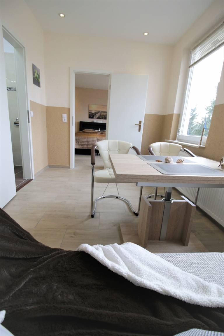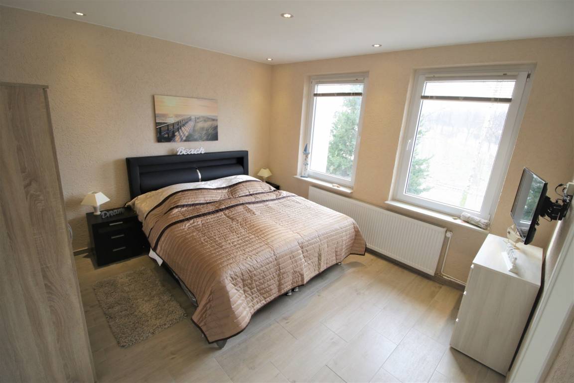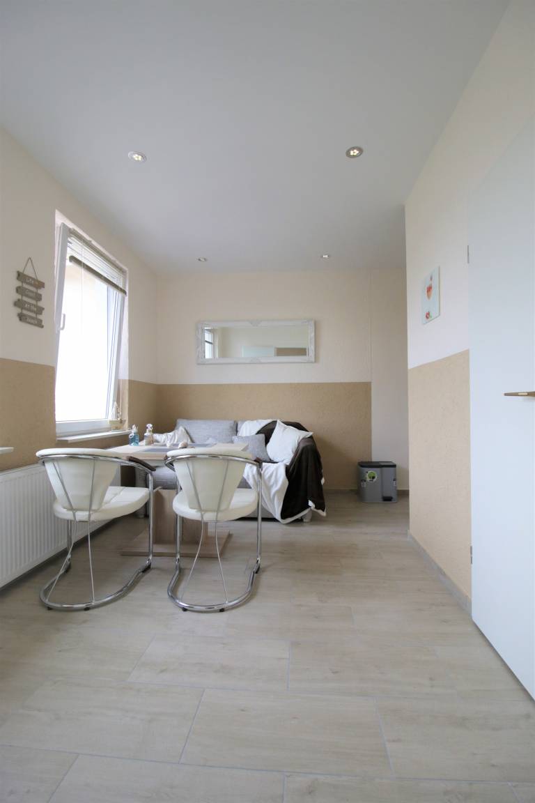 Diese Wohnung ist geeignet für maximal eine Familie mit zwei Kindern. Das Schlafzimmer ist mit einem komfortablen Boxspringbett, einem 32 Zoll LED- Flachbildschirm-Fernseher, einem DVD- Player, einer Kompaktstereoanlage und einem LED- Radiowecker ausgestattet. Im kombinierten Ess-/ Wohnzimmerbereich befindet sich zusätzlich eine Schlafcouch (mit Lattenrost). Das moderne Duschbad ist mit einem Waschtisch, einem Spiegelschrank und einer geräumigen Duschkabine mit Regenwalddusche ausgestattet.
