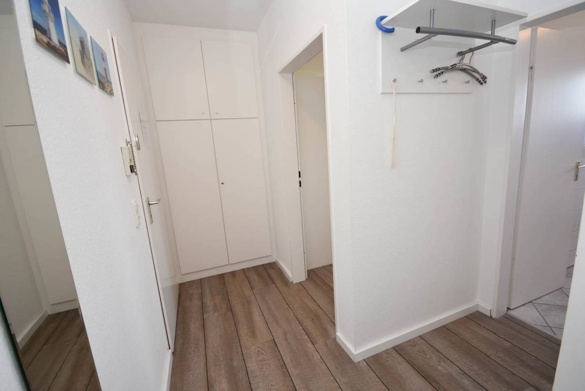 Ihr Feriendomizil befindet sich zentral im Ort gelegen, der Strand und auch die Einkaufsmöglichkeiten sind in nur wenigen Gehminuten erreicht. Die komplett renovierte und modern eingerichtete Ferienwohnung befindet sich in der 2. Etage (Endetage) eines Mehrfamilienhauses. Sie haben einen sehr schönen Ausblick zur nahe gelegenen Ostsee. Die 2- Zimmerwohnung ist gut geschnitten und verfügt über einen Flur mit Garderobe, ein separates Schlafzimmer mit einem Doppelbett und einen großzügigen kombinierten Küchen-/Wohnbereich mit einer ausziehbaren Schlafcouch (Breite ca. 155 cm). Ein kleiner Abstellraum und ein freundliches helles Duschbad gehören ebenso dazu. Auf dem nach Osten ausgerichteten Balkon können Sie entspannt beim Sonnenaufgang frühstücken und den Tag genießen...Der Strand ist nur wenige hundert Meter von hier aus entfernt. Sämtliche Einkaufs- und Freizeitmöglichkeiten des Ortes sind von hier aus schnell erreicht. Abstellmöglichkeiten für Fahrräder und eines PKW sind auf den eigenen Parkplatz möglich.