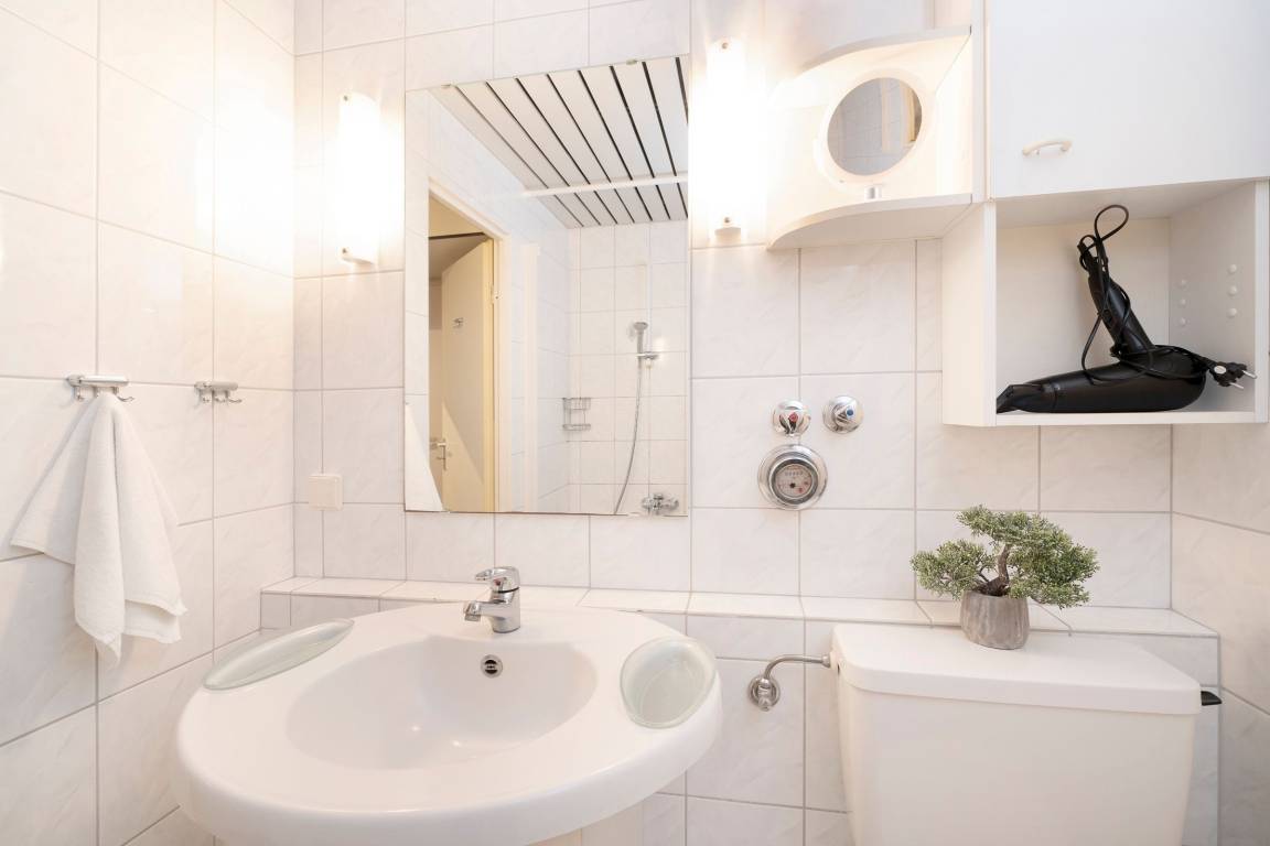 Ein PKW-Tiefgaragenstellplatz ist für Sie reserviert (max. 185 cm Durchfahrtshöhe). Die Nutzung des Hallenbades, der drei Gemeinschafts-Dachterrassen mit Meer- und Landblick sowie des Tischtennisraumes sind für Sie selbstverständlich kostenlos. Ihre mitgebrachten Fahrräder können Sie in einem der 2 Kellerräume in Haus A oder in dem Fahrradraum im Erdgeschoss zwischen Haus A und B abstellen. In Haus D befindet sich auf den Etagen 1 - 4 je ein Gemeinschaftswaschraum mit Waschmaschine und Trockner (gegen Gebühr/Münzgeräte).
