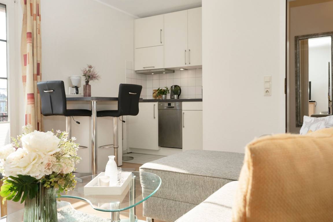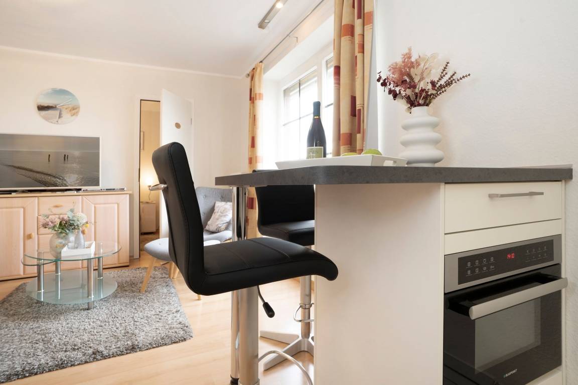 Diese geschmackvolle Ferienwohnung befindet sich im 1. Obergeschoss, umfasst eine Wohnfläche von ca. 41 m² und bietet ausreichend Platz für bis zu 2 Personen.