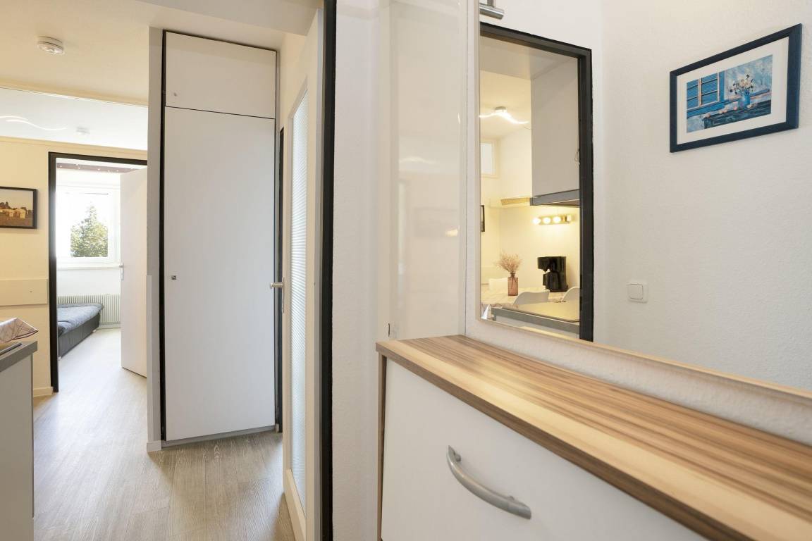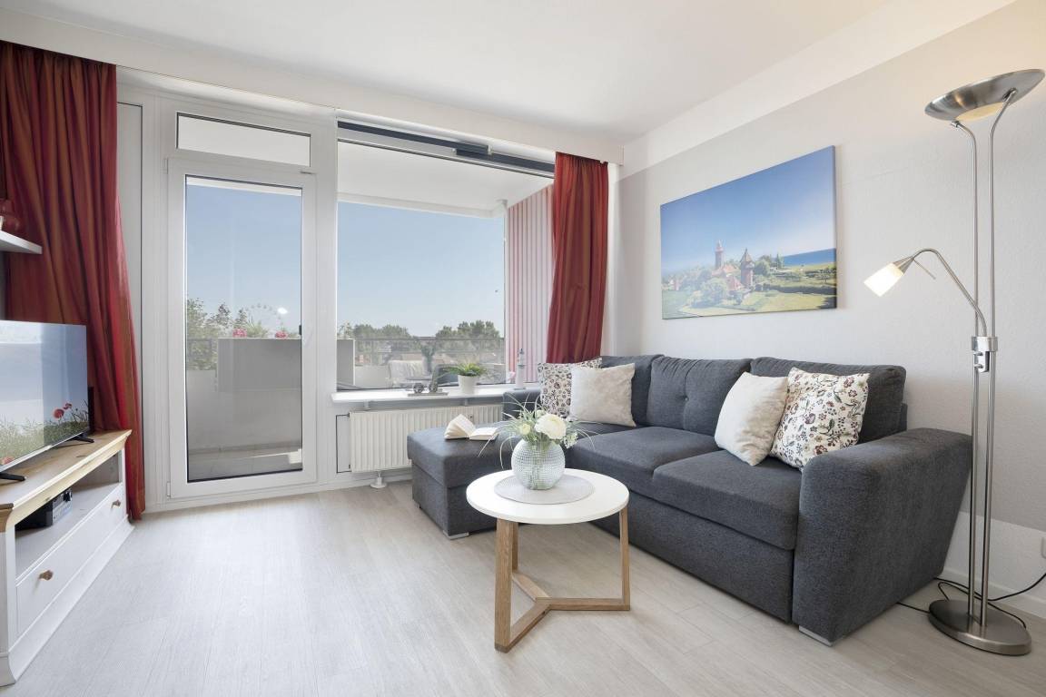 Die Ferienwohnung "Meeresflüstern" in der 3. Etage des Hauses Berolina bietet Platz für bis zu 4 Personen. Der Wohn-, Schlafbereich ist mit einem gemütlichen Sofa und einem TV ausgestattet. Ein abgeteilter Schlafbereich mit Doppelbett (2 Einzelmatratzen 90x200 cm) und Kleiderschrank ist ebenfalls vorhanden. Zusätzlich gibt es einen separaten Schlafraum mit einem Schlafsofa (140x200 cm) und Kleiderschrank. Die voll ausgestattete Küche umfasst einen Ceranherd, Backofen, Geschirrspülmaschine und Kühlschrank mit Gefrierfach sowie einen Essplatz. Das moderne Badezimmer verfügt über eine Dusche und WC. Gemeinschaftliche Einrichtungen wie Waschmaschinen und Trockner befinden sich auf den Etagen 1 bis 4. Haustiere sind gegen Gebühr willkommen. Die Wohnung ist ein Nichtraucherdomizil.