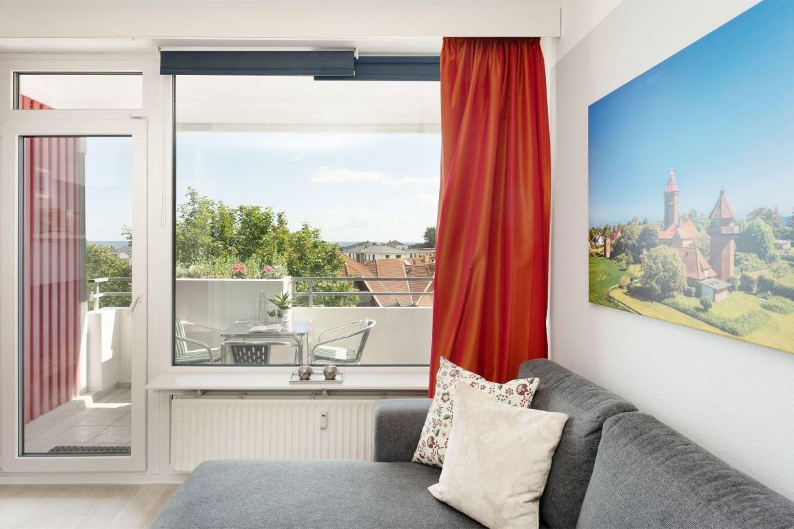 „In der 3. Etage des Hauses Berolina bietet diese Unterkunft für bis zu 4 Personen Meerblick, Schwimmbad und vieles mehr – nur 5 Gehminuten vom feinen Dahmer Sandstrand entfernt!"