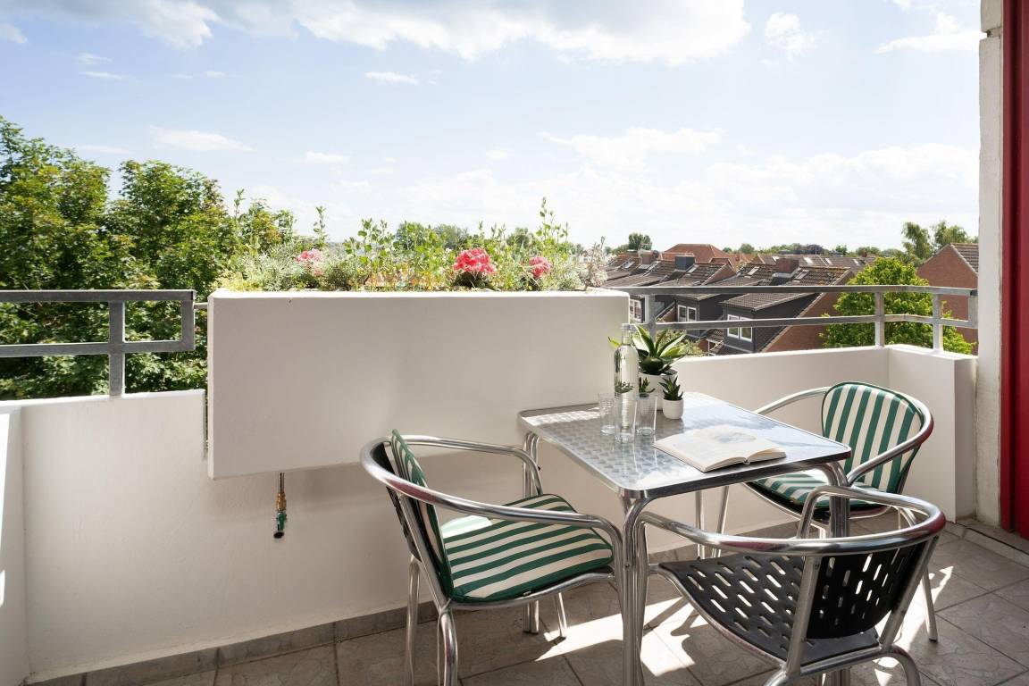 In der Ferienwohnung „Meeresflüstern" erwartet die Gäste ein wunderschöner Außenbereich mit einem möblierten Balkon, der einen herrlichen Blick auf das unendliche Meer bietet. Hier kann das Frühstück genossen werden, während das rauschende Meer im Hintergrund erklingt. Für Badefreunde ist der feine Dahmer Sandstrand in nur 5 Gehminuten erreichbar. Die Anlage bietet zudem drei Dachterrassen mit Ostsee-Weitblick zur gemeinschaftlichen Nutzung, wo sich entspannende Stunden mit beeindruckenden Ausblicken verbringen lassen. Die Gäste haben außerdem Zugang zu einem hauseigenen Schwimmbad, einem separaten Kleinkindbecken und gemeinschaftlichen Sportmöglichkeiten wie Tischtennis und Darts. Alle Außenbereiche sind exklusiv für die Gäste und Eigentümer des Hauses Berolina zugänglich. Ein Parkplatz in der Tiefgarage gehört ebenfalls zur Unterkunft.