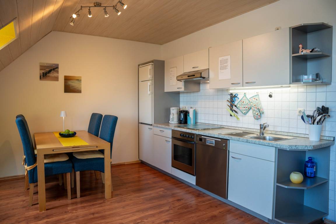 „Ich bin super zufrieden mit dieser Ferienwohnung. Unglaublich sauber, mit allem bestückt was man so braucht im Alltag und im Urlaub. Etwas nachteilig empfinde ich die Schräge im Schlafzimmer; für sehr große Menschen könnten Probleme bezüglich aufrecht stehen. Aber ansonsten habe ich überhaupt nichts zu meckern gehabt Würde ich auf jeden Fall noch einmal buchen. Die Nähe zum Strand ist einfach fantastisch und in unmittelbarer Nähe der FW gibt es Einkaufsmöglichkeiten, Restaurants sowie Eisdiele und Cafés. Einfach ideal“