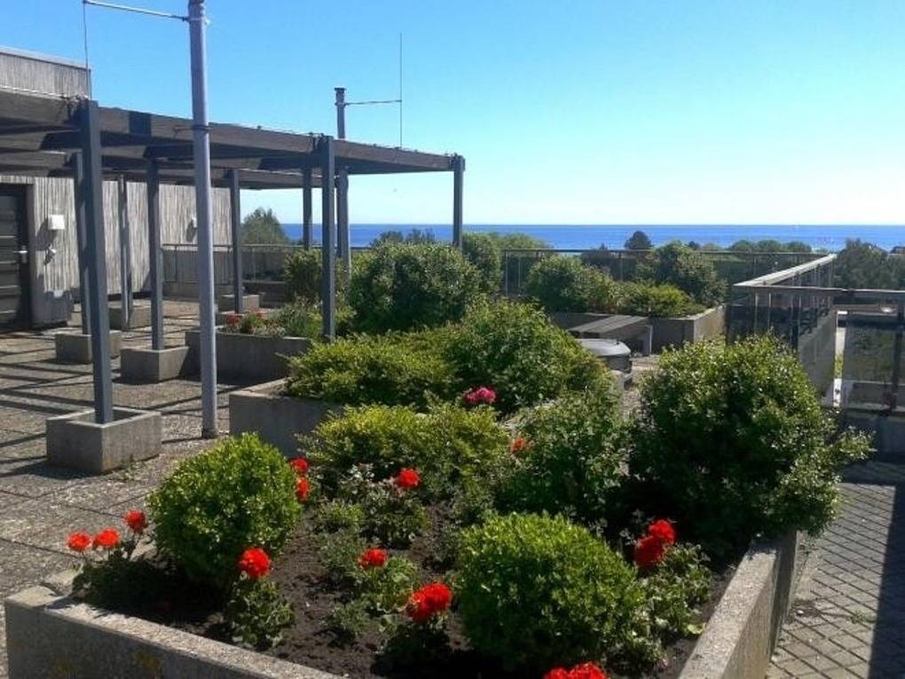 Das 8 x 15 m große Hallenbad, welches exklusiv und kostenlos hauseigenen Gästen zur Verfügung steht, erreichen Sie direkt über den Aufzug. Mit diesem gelangen Sie auch auf die insgesamt 3 Dachterrassen, die Ihnen einen traumhaften Meer- und Landblick bieten. Das vorhandene Solarium im Hallenbad kann gegen Gebühr ebenfalls genutzt werden.