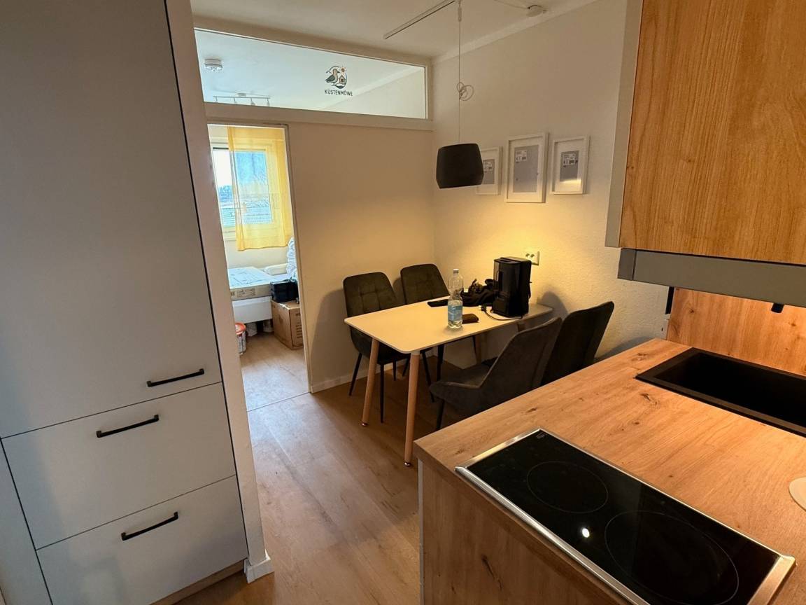 Die Ferienwohnung begrüßt Sie mit einem freundlichen Wohnbereich, der mit gemütlichen Sitzmöbeln und Fernseher zu entspannten Stunden einlädt. Von hier aus gelangen Sie auf den Balkon, der sich ideal für erholsame Momente an der frischen Ostseeluft eignet. Die integrierte Küchenzeile ist praktisch ausgestattet und bietet alles, was Sie für die Zubereitung Ihrer Mahlzeiten benötigen; der angrenzende Essbereich lädt zum gemeinsamen Genießen ein. Das separate Schlafzimmer sorgt für erholsame Nächte und ausreichend Rückzugsmöglichkeiten. Das Badezimmer verfügt über eine Badewanne sowie ein WC und bietet einen angenehmen Komfort für Ihren Aufenthalt. Das Haus Berolina bietet zudem einen beheizten Innenpool zur gemeinschaftlichen Nutzung an.