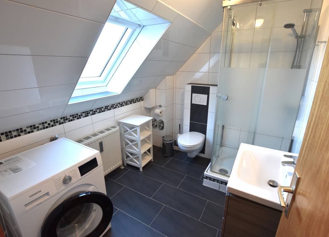 Bad mit Dusche und WC.