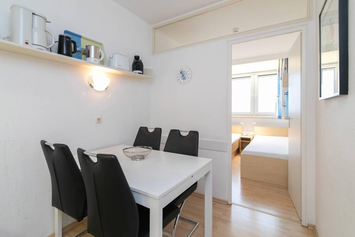 In dieser Wohnung mit Balkon in der 8. Etage der Apartmentanlage Berolina haben Sie einen der schönsten Ausblicke auf die Ostsee. Genießen Sie Ihren Urlaub in dieser modern eingerichteten 2-Zimmer-Ferienwohnung auf ca. 46 m² für bis zu 4 Personen.
