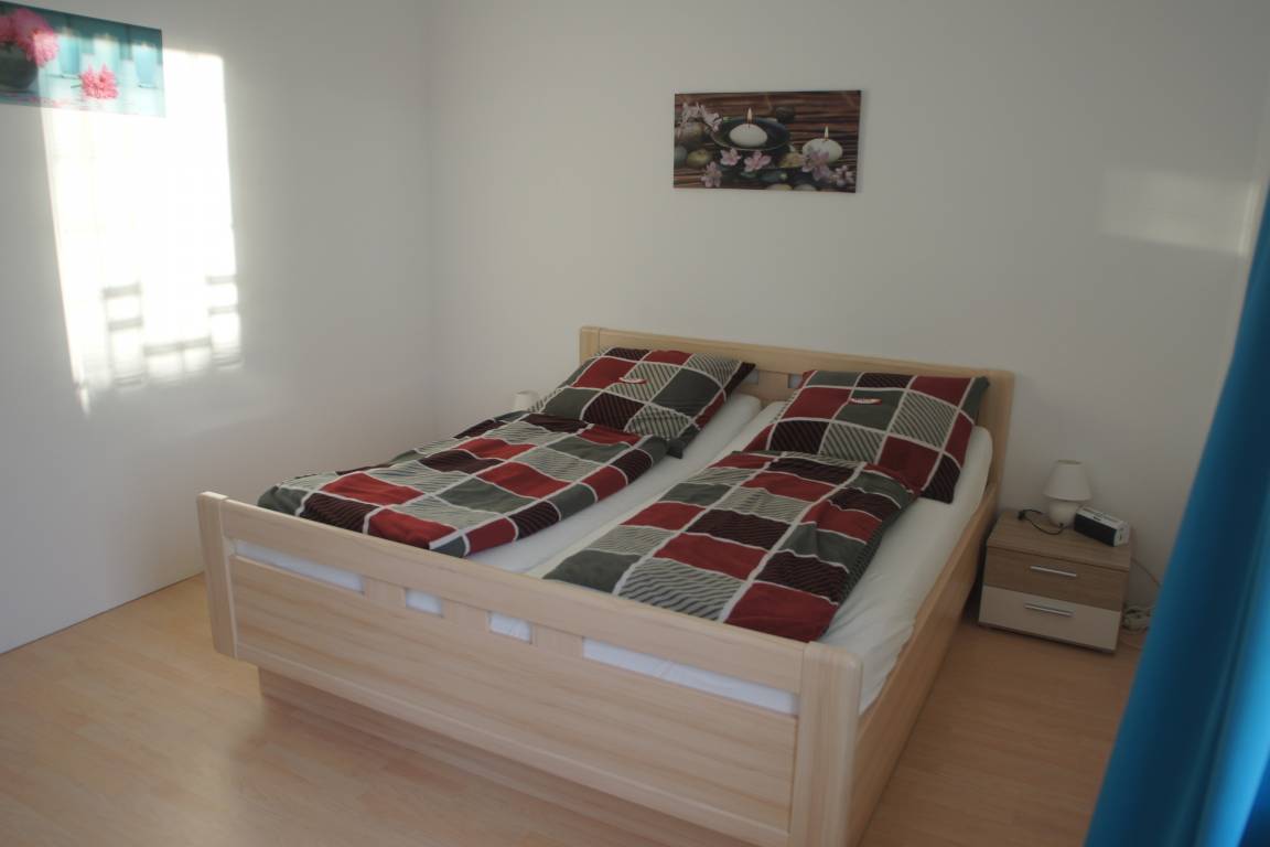 Das Schlafzimmer ist mit einem Doppelbett (180 cmx200 cm) eingerichtet.