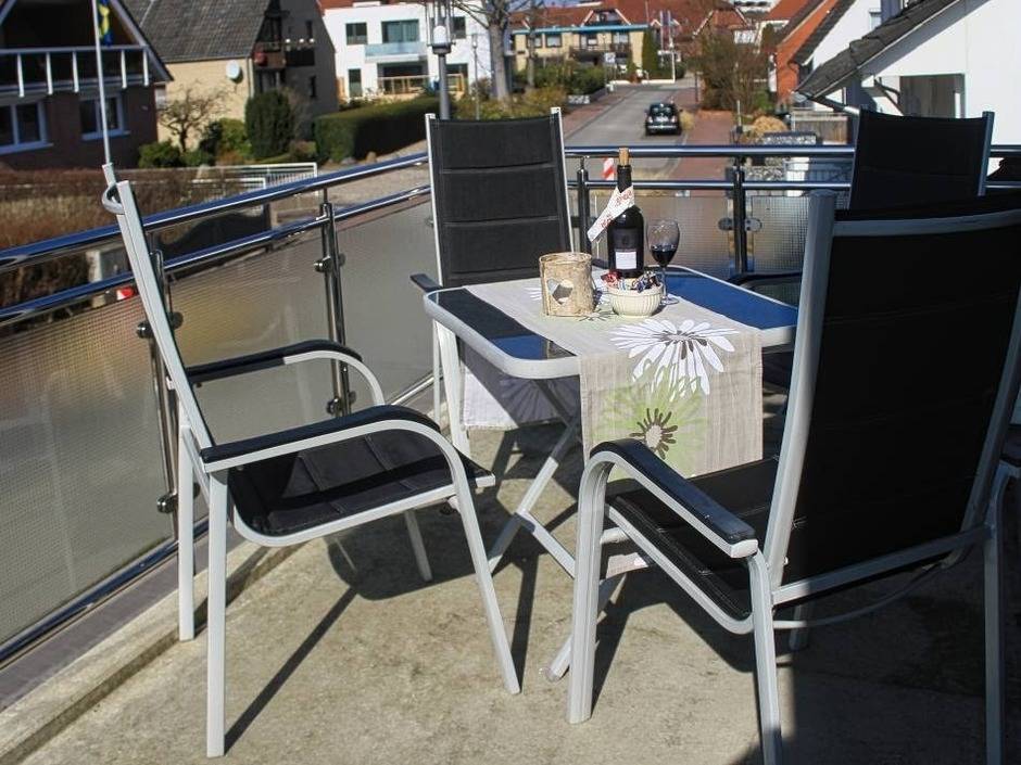 Drei Zimmer Ferienwohnung in ruhiger Wohnlage, zirka 100 mtr. zum Hauptstrand. Die Wohnung befindet sich im 1. OG eines 4-Familienhauses, Vom modern gestalteten Wohnraum mit offener Küche gelangt man direkt auf den großen mit Terrassenmöbeln ausgestatteten Westbalkon, (ca.14 qm). Zur Wohnung gehören darüber hinaus zwei Schlafzimmer, wobei eines der beiden Schlafzimmer mit Einzelbetten (ein Bett nur für Kinder geeignet) ausgestattet ist. Neben Duschbad "en suite" gibt es in der Wohnung ein Gäste-WC.