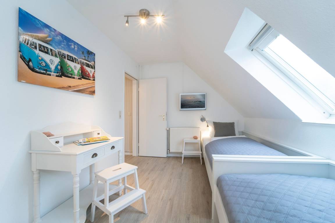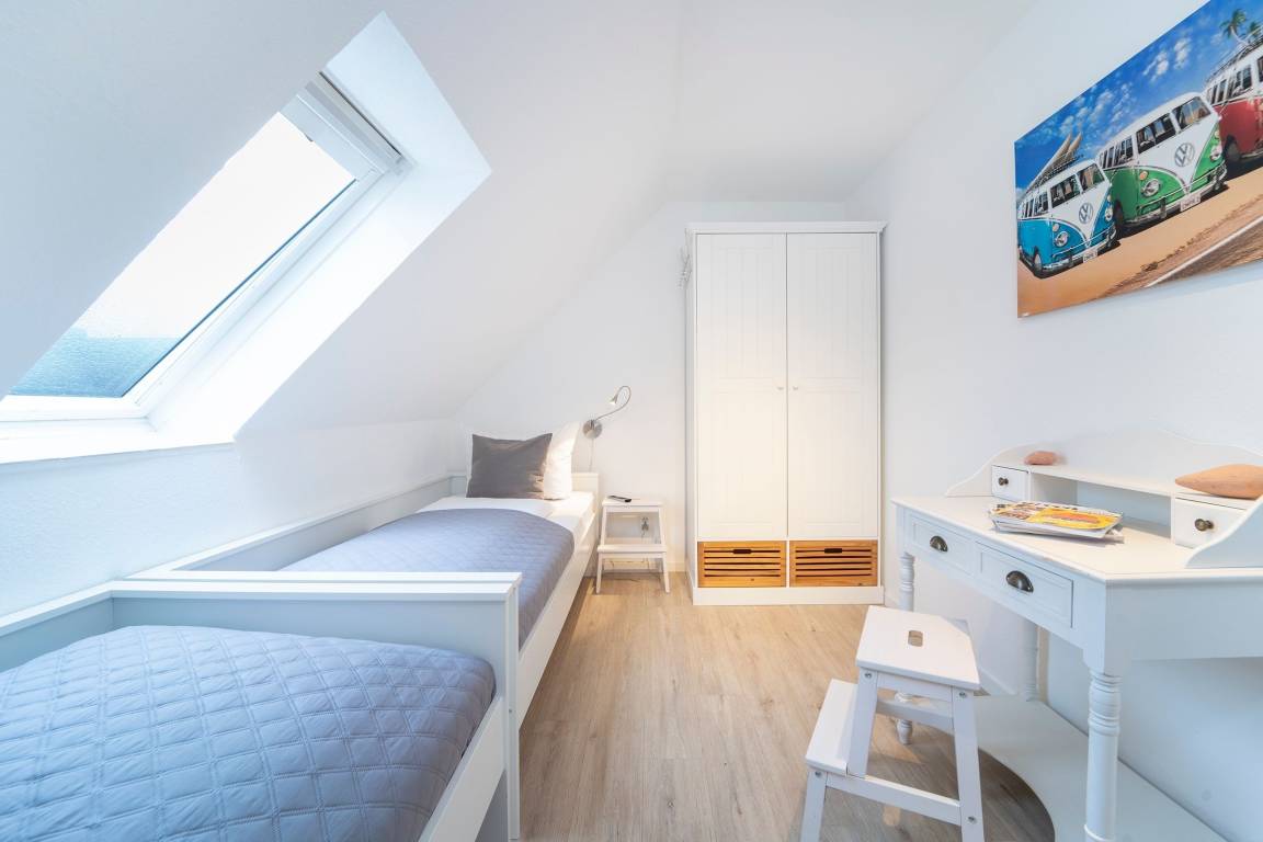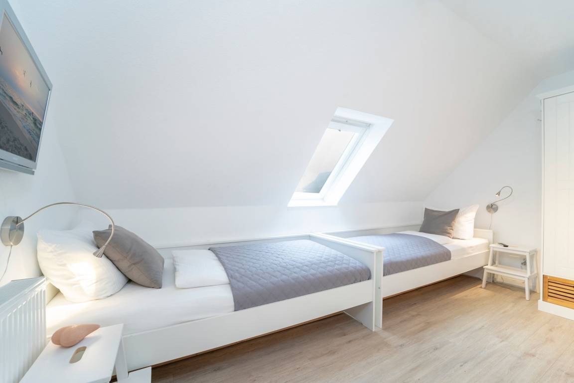 Schlafzimmer 2: 2 Einzelbetten (2x 90x200 cm), Kleiderschrank, TV, Verdunkelung (Plissee)