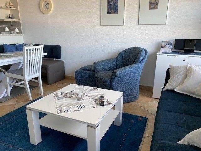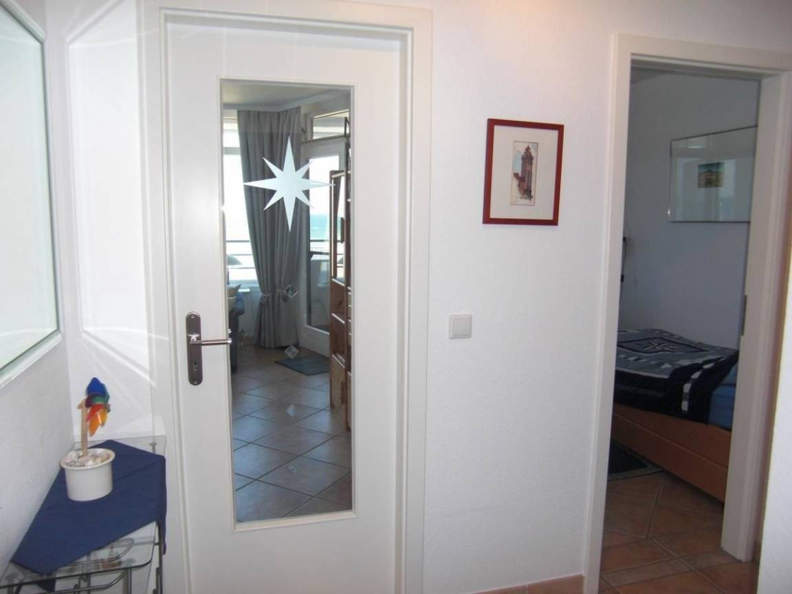 Das Appartement im Strandhotel befindet sich im 3. Stock und bietet einen atemberaubenden Meerblick von Mecklenburg-Vorpommern bis nach Fehmarn. Der Wohnbereich ist gemütlich gestaltet und verfügt über eine komfortable Sitzgruppe sowie eine Essecke. Die gut ausgestattete Küche ist durch einen Tresen vom Wohnbereich abgetrennt. Im separaten Schlafzimmer stehen zwei Einzelbetten bereit. Das Badezimmer überzeugt durch eine annähernd ebenerdige Dusche. Gästen steht das hauseigene Schwimmbad zur freien Nutzung zur Verfügung. Darüber hinaus können die Sauna, Waschmaschine und Trockner gegen Gebühr genutzt werden. Das Appartement bietet zudem einen eigenen PKW-Stellplatz.