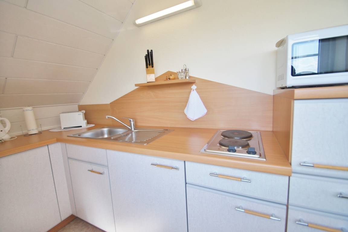 Sie ist ca. 38qm groß und bietet ausreichend Platz für 2 Personen. Der offene Wohn- und Schlafbereich mit angrenzender offener Küche ist gemütlich eingerichtet und wird Sie zu überzeugen wissen. Von der Küche und dem Essbereich aus, haben Sie einen wundervollen Ausblick in die Natur und auf das gepflegte Rasengrundstück. Das Badezimmer ist mit Dusche und WC ausgestattet. Der Schlafbereich ist mit einem Doppelbett ausgestattet, im Wohnbereich stehen ein 2 er Sofa sowie ein Sessel zum gemütlichen Beisammen sein für Sie bereit. Zur Küchenzeile hin ist der Essbereich für 2 Personen. Die offene Küche ist mit einem 2 Plattenherd, einer Mikrowelle, Wasserkocher und Kaffeemaschine ausgestattet. Geniessen Sie Ihren Urlaub bei uns an der Ostseeküste.