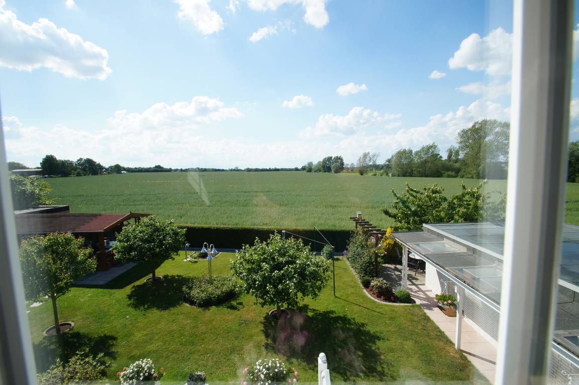 Die Ferienwohnung Mueller 4 befindet sich in der 1. Etage eines freistehenden Hauses. Das Haus befindet sich in ruhiger Feldrandlage mit wundervollem Blick über die Felder und Wiesen der Oldenburger- Graben- Niederung.