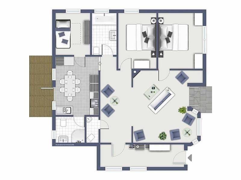 90 m² Ferienwohnung ∙ 3 Schlafzimmer ∙ 6 Gäste