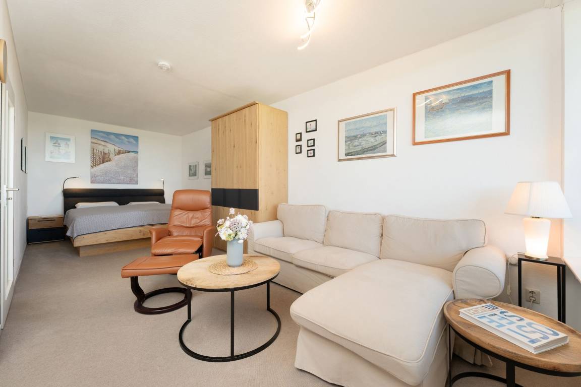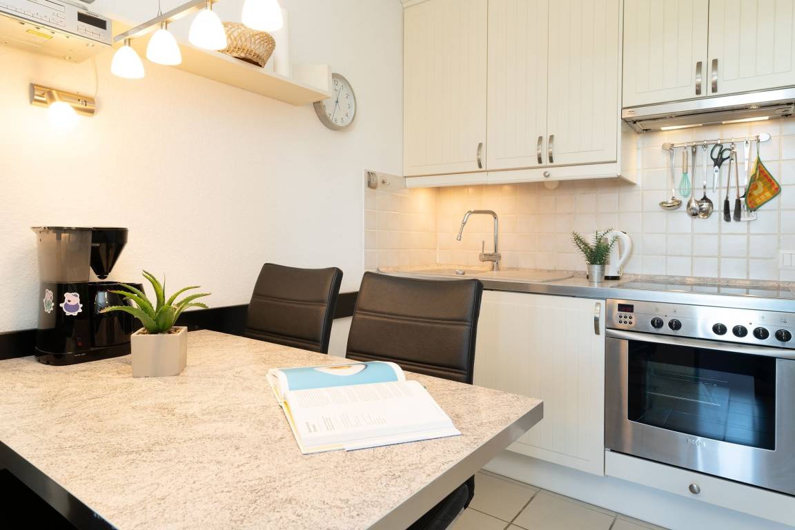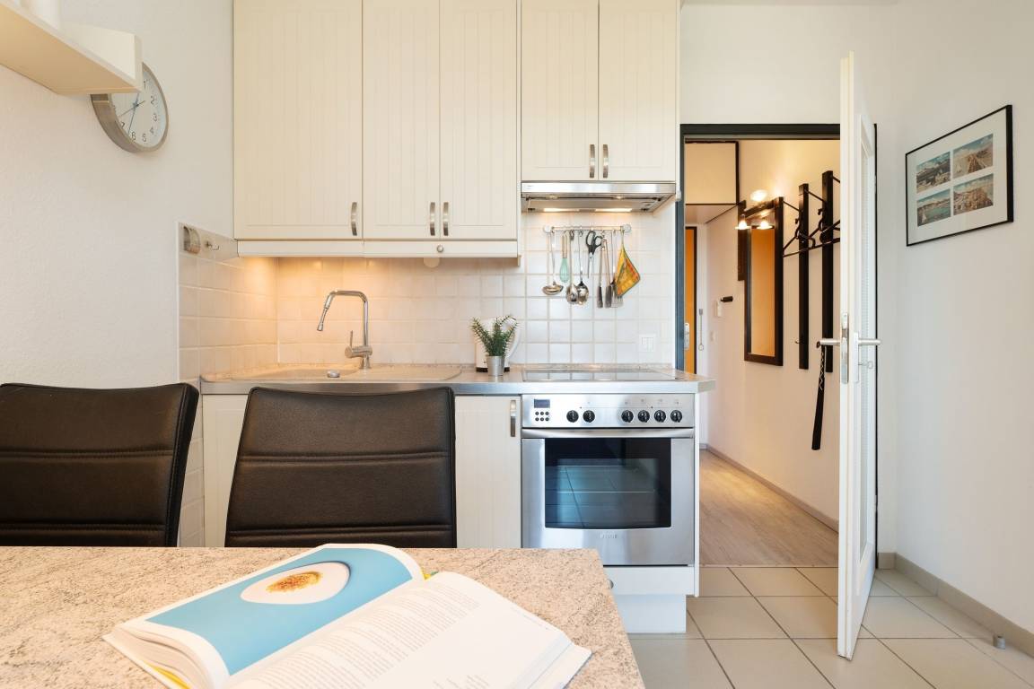 Eine sehr schöne Ferienunterkunft, in der Sie ihren Urlaub von der ersten Minute an genießen werden. Die Wohnung verfügt über einen kombinierten Wohn- und Schlafraum mit Doppelbett (2x 90x200 cm), ein Schlafzimmer mit Schlafsofa (ca. 140-150x200cm), eine gut ausgestattete Küche sowie ein modernes Duschbad. Genießen Sie von Ihrem Balkon die wärmende Nachmittagssonne und unvergessliche Sonnenuntergänge. Der WLAN-Anschluss ist inklusive.