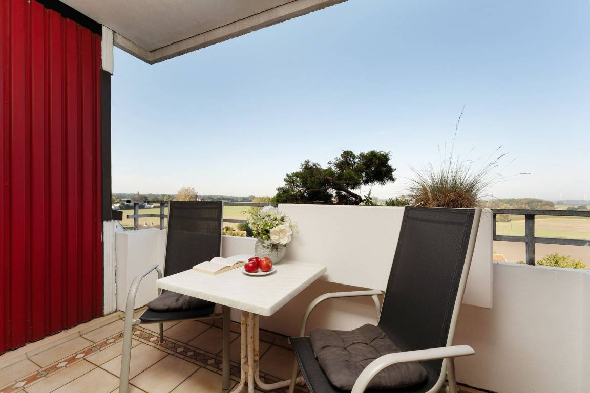 Ein PKW-Tiefgaragenstellplatz ist für Sie reserviert (max. 185 cm Durchfahrtshöhe). Die Nutzung des Hallenbades, der drei Gemeinschafts-Dachterrassen mit Meer- und Landblick sowie des Tischtennisraumes sind für Sie selbstverständlich kostenlos. Ihre mitgebrachten Fahrräder können Sie in einem der 2 Kellerräume in Haus A oder in dem Fahrradraum im Erdgeschoss zwischen Haus A und B abstellen. In Haus D befindet sich auf den Etagen 1 - 4 je ein Gemeinschaftswaschraum mit Waschmaschine und Trockner (gegen Gebühr/Münzgeräte).
