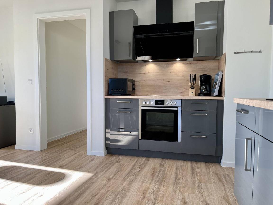 Die Ferienwohnung "Dahmer Dünen - Müller's Strand & Mee(h)r" bietet auf 88 m² Platz für bis zu 4 Personen und überzeugt mit durchdachten Raumlösungen. Das helle Wohnzimmer ist modern eingerichtet und verfügt über eine Wohnlandschaft, einen Sessel sowie einen Flatscreen-Smart-TV. Die offene, voll ausgestattete Küche hat einen Essplatz für 4 Personen. Beide Schlafzimmer sind mit hochwertigen Boxspringbetten (180 x 200 cm) und Flatscreen-Smart-TVs ausgestattet. Ein geräumiges Bad mit barrierefreier Dusche und Sauna sowie ein separates Gäste-WC ergänzen die Ausstattung. Es gibt einen Abstellraum mit Waschmaschine und Trockner. Verdunkelungsplissees und Fußbodenheizung sorgen für Behaglichkeit. WLAN ist ebenfalls verfügbar. Ein PKW-Stellplatz und ein abschließbarer Fahrradabstellplatz sind vorhanden; Fahrräder können gemeinschaftlich genutzt werden. Kinderreisebett und Hochstuhl stehen zur Verfügung, und ein Hund ist gegen Gebühr willkommen.