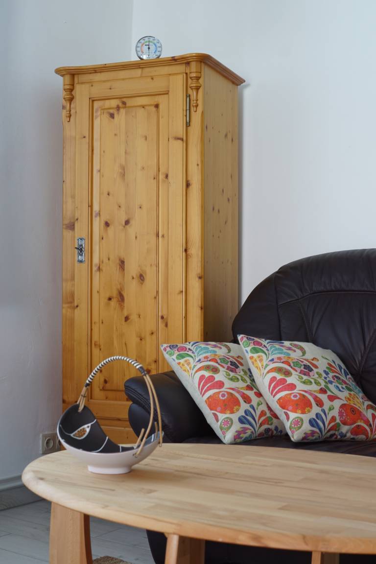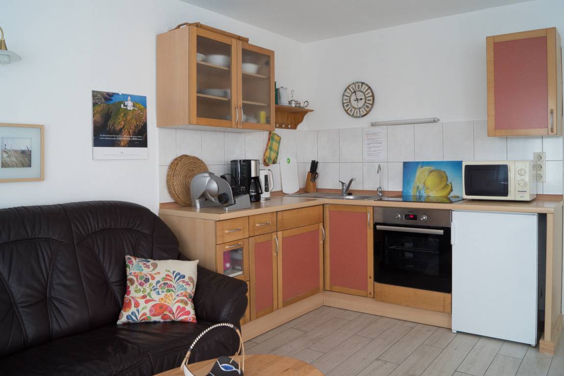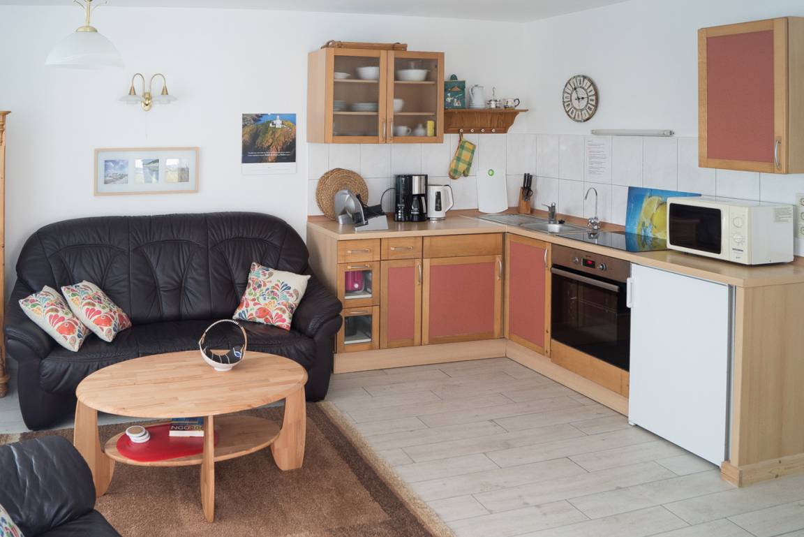 Die Ferienwohnung befindet sich im Erdgeschoss, ist 50qm groß und ist für 2 Personen ausgelegt. Ausgestattet mit einer Küche (Mikrowelle, Induktionsherd und Backofen, Toaster, Kaffeemaschine, Kühlschrank (Gefrierfach), einem Schlafzimmer Doppelbett, Höhe 50cm) und einem Badezimmer (Dusche, Haartrockner). Der Wohnbereich ist mit einem TV (Flachbildschirm), CD-Player und DVD-Player, Internet/W-Lan ausgestattet.
