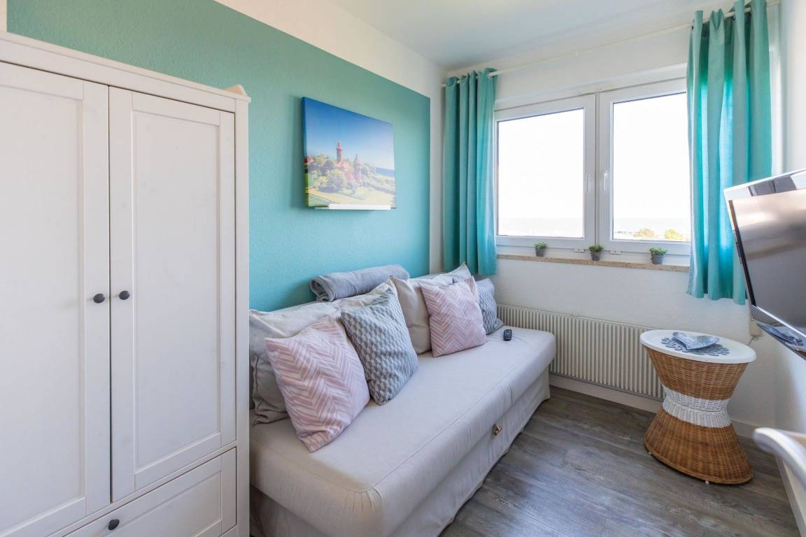 Das stilvolle 2-Zimmer-Appartement im modernen skandinavischen Flair bietet auf 47 m² Wohnfläche Platz für bis zu 3 Personen in der 6. Etage des Hauses Berolina. Es verfügt über ein Wohn-, Schlafzimmer mit Chaiselongue-Sofa, TV und Zugang zum möblierten Balkon, sowie einen separaten Schlafraum mit Einzelbett. Die voll ausgestattete Küche umfasst eine Spülmaschine und einen Essplatz. Das Badezimmer ist mit einer großen Dusche und WC ausgestattet.