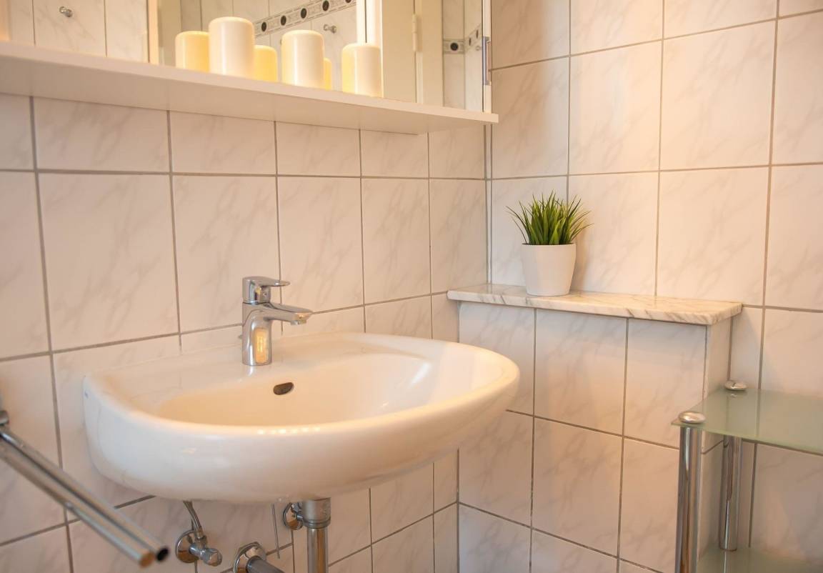 Die Drei-Zimmer-Ferienwohnung im Obergeschoss eines Einfamilienhauses bietet auf 60 m² Wohnfläche Platz für bis zu 2 Erwachsene und 3 Kinder. Das Wohnzimmer ist mit einer modernen Sofalandschaft, einer Schlafcouch und einem TV ausgestattet und verfügt über einen direkten Zugang zum kleinen Westbalkon. Die separate, voll ausgestattete Küche enthält einen Backofen, ein Ceranfeld, einen Geschirrspüler sowie eine Eckbank mit Tisch. Das Schlafzimmer ist mit einem Doppelbett und einem Kleiderschrank eingerichtet und führt in ein zweites Schlafzimmer mit einem Etagenbett. WLAN steht kostenfrei zur Verfügung. Ein Pkw-Stellplatz befindet sich direkt am Haus. Kinderreisebett und Hochstuhl sind inklusive, während Haustiere in dieser Unterkunft nicht gestattet sind. Gemeinsam genutzte Müllbehälter sind links vom Haus zu finden.
