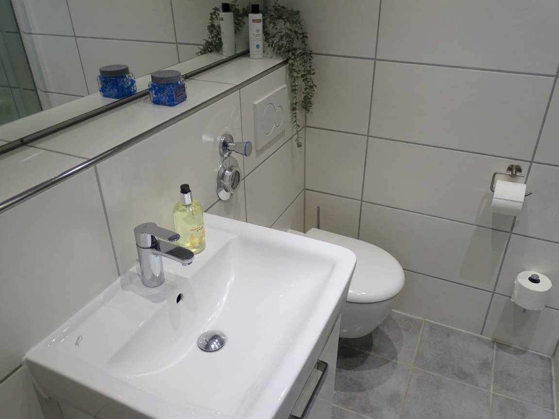 „Die Ferienwohnung ist sehr ansprechend eingerichtet und sehr gut ausgestattet! Alles liebevoll hergerichtet und sehr sauber! Die Lage ist günstig gelegen und in Haus war es ruhig. Einzig kleines Manko, dass es keine Möglichkeit an der Anlage, oder im Ort gab, unser E-Auto zu laden. Liebe Grüße Fam. Schön aus Hude/Niedersachsen“