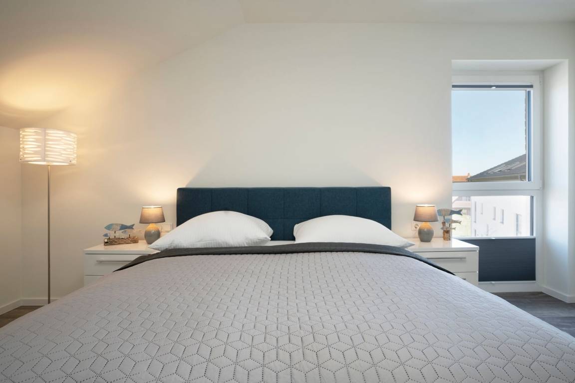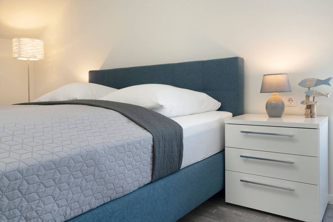Nach langen Strandspaziergängen und einem Saunagang entspannt es sich ganz hervorragend in dem komfortablen Boxspringbett (ca. 180x200cm). 2 weitere Gäste können es sich hier auf einem weiteren Schlafsofa bequem machen (ca. 140 x 200 cm). Auch das Tageslichtbad wird Sie mit seinem klaren Design und großzügiger, ebenerdiger Dusche mit charmantem Oberlicht überzeugen.