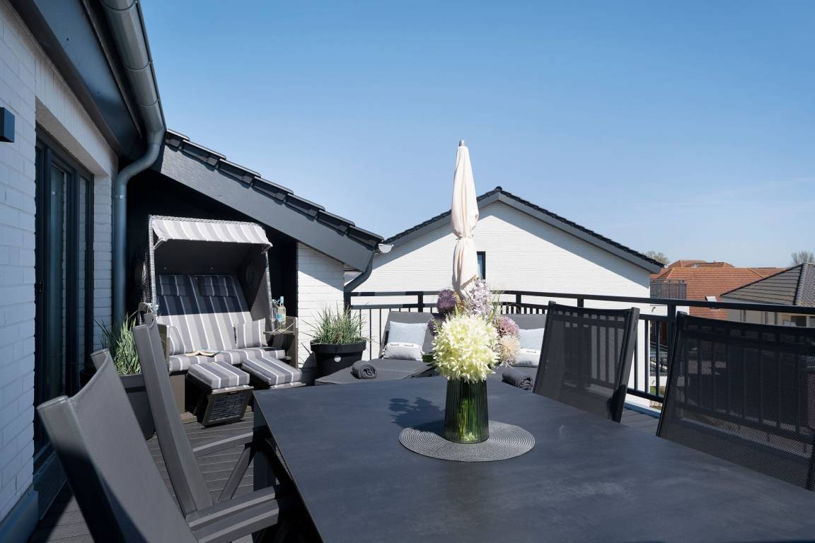 Verbringen Sie mit bis zu 4 Personen Ihren nächsten Ostseeurlaub in dieser individuellen Neubau-Ferienwohnung. Auf ca. 72m² Wohnfläche entspannen und relaxen Sie vom Alltag. Nach einem Aufguss in der eigenen Sauna können Sie auf der ca. 30m² großen Dachterrasse die Seele baumeln lassen.
