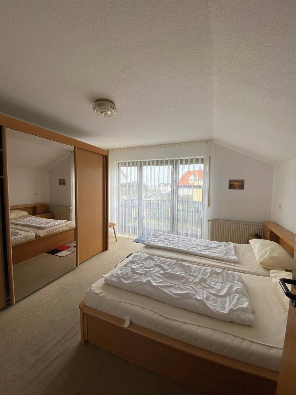 Das Reihenhaus im Wohnpark Achtern Diek bietet eine komfortable Unterkunft, nur etwa 100 Meter vom Strand entfernt. Der Wohnraum ist mit Laminat ausgestattet und verfügt über eine gemütliche Sitz- und Essecke sowie einen Farb-TV. Eine Terrasse lädt zum Entspannen ein. Die Küche ist funktional eingerichtet und ergänzt mit einem Gäste-WC im Erdgeschoss. Im Obergeschoss befinden sich zwei Schlafzimmer: eines mit einem Doppelbett und Balkon, das andere mit zwei Einzelbetten. Das Badezimmer ist mit einer Dusche und WC ausgestattet.