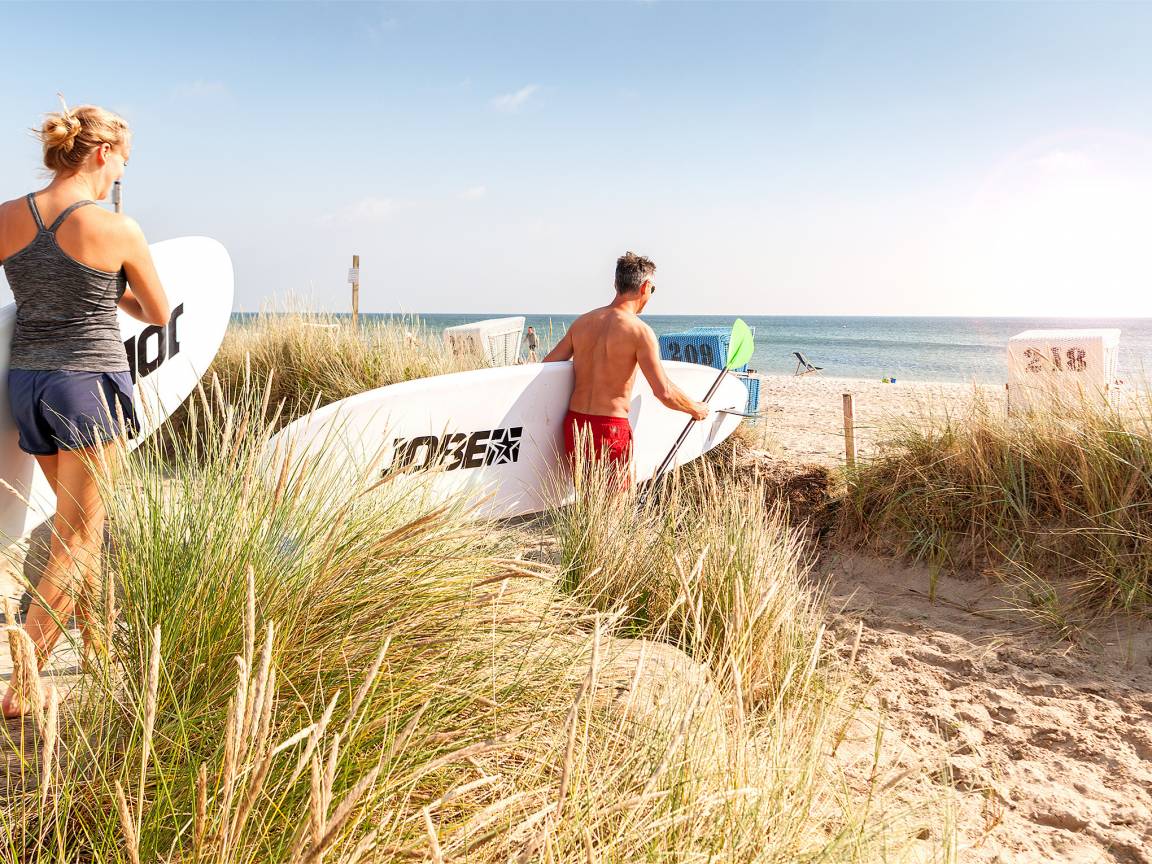 Am Strand kommst du bei uns nicht vorbei. Und das willst du sicher auch nicht. Denn direkt vor unseren Türen erstrecken sich über 4.000 Meter feinster, sauberer Ostseestrand, so weit du sehen kannst. Das bedeutet, ganz viel Platz für all das, was Spaß macht. Besonders viel davon gibt es übrigens in den kälteren Jahreszeiten. Also noch mehr Platz für dich, um so richtig runterzufahren.