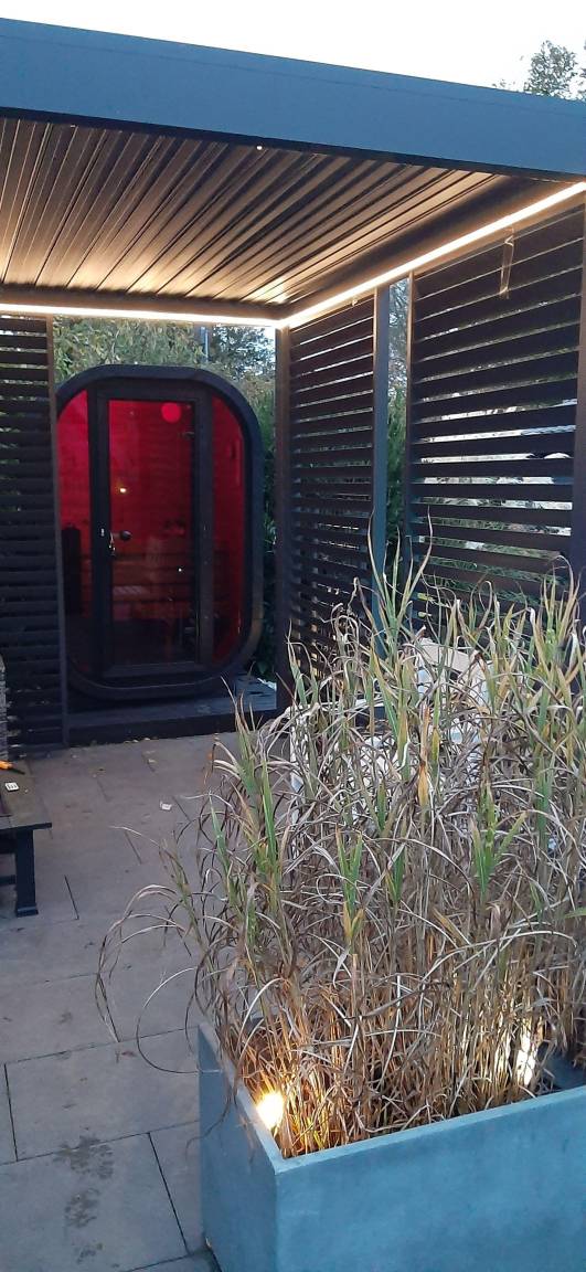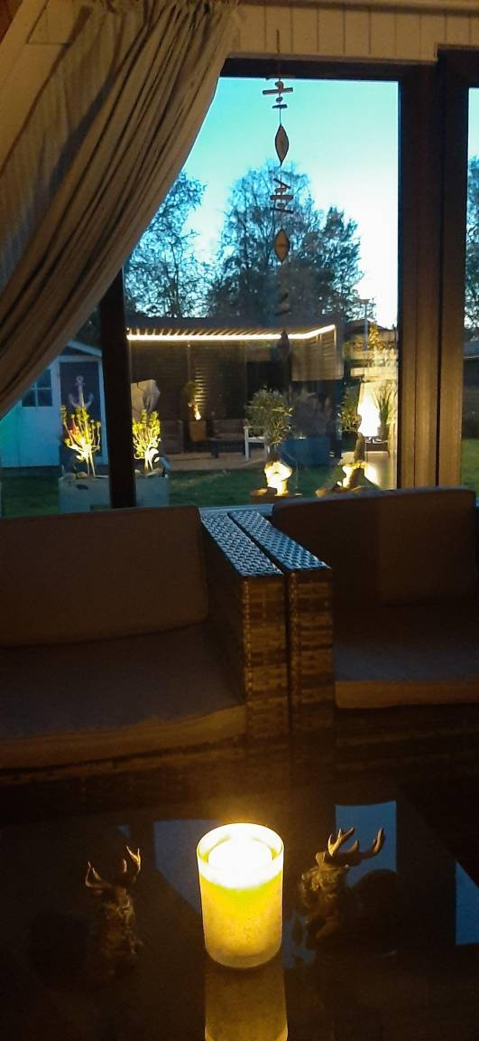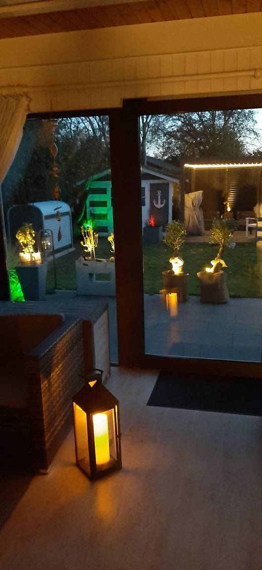 Der Garten läd zum spielen,grillen und chillen ein. Es gibt eine große Terrasse mit Lounge-Möbeln, hübscher Beleuchtung,Markise, Liegen,Grill und Essbereich. Die kleine Terrasse läd am späten Nachmittag mit Lamellenpavillion, Gartensauna,Strandkorb, Sonnenschirm,Tisch und Stühlen auf die letzten Sonnenstrahlen bei einem Glas Wein ein.