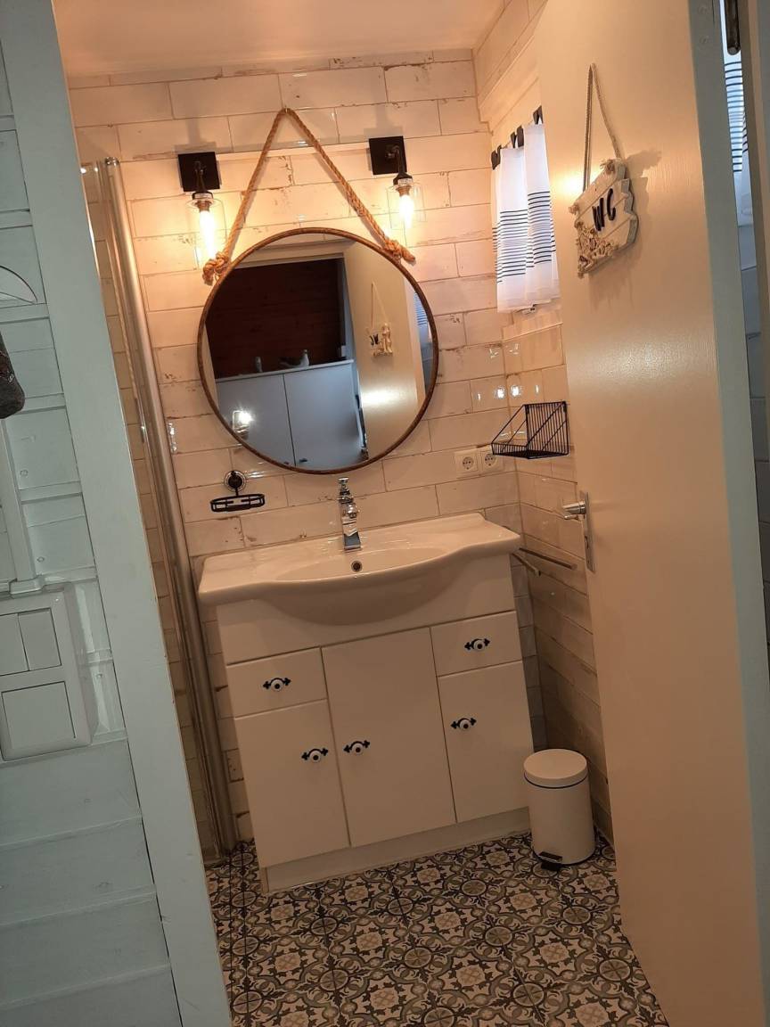 Das großzügige, maritim eingerichtete Ferienhaus verfügt über einen großen Wohn/Essbereich, einer vollwertigen Küche, bodentiefer Dusche ,2 Schlafzimmern,2 Terrassen, Garten zum grillen und chillen, Wlan,PKW Stellplatz.