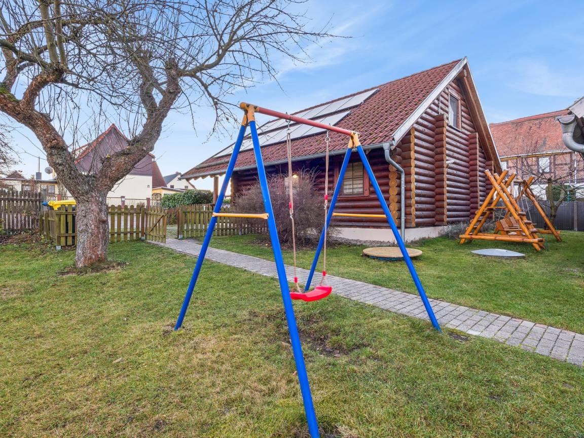 Hausbeschreibung : Das Holzstammhaus in Dankerode überzeugt mit warmer Atmosphäre und dem natürlichen Charme massiver Holzbalken. Der großzügige Garten mit Terrasse und Balkon bietet viel Raum zum Entspannen. Ob bei einem Grillabend im Sommer oder ruhigen Stunden mit Blick ins Grüne – hier verbinden sich Komfort und Natur zu erholsamen Tagen im Harz