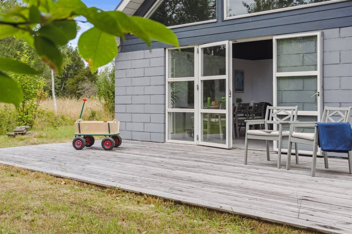 DraußenDie Ferienunterkunft liegt auf einem 800 m² großen Naturgrundstück. Die Entfernung zum Meer beträgt 400 m. Die nächste Einkaufsmöglichkeit liegt 2000 m entfernt. Es steht ein offenes Terrassenareal zur Verfügung. Parkplatz auf dem Grundstück.