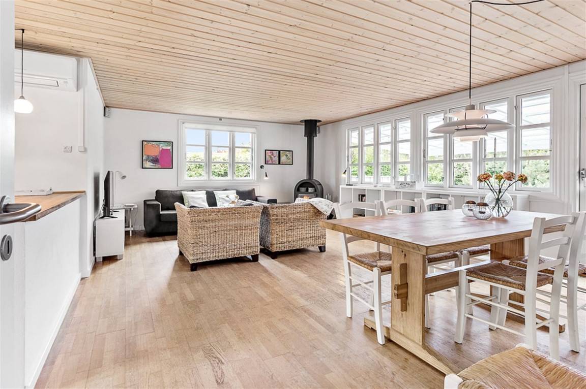 Dieses schöne Ferienhaus tritt hell und einladend hervor mit eine gute Ambiente. Das Haus liegt in einer Sackgasse - nur 200 m vom Strand entfernt. Zum Haus gehören sowohl offene als auch überdachte Terrassen mit Gartenmöbeln.