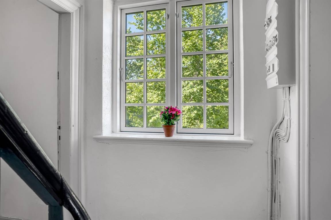 Das Ferienhaus ist ein wunderschönes, quadratisches Backsteingebäude über zwei Etagen mit einer außergewöhnlich hohen Dachkonstruktion. Und tatsächlich verbirgt sich der Grund für dieses besondere Bauwerk bis heute direkt unter dem Dachgebälk: Hier steht nämlich ein 2000-Liter-Wassertank aus Eisen, versteckt in einer Kiste mit einer dicken Schicht aus Stroh als Isolierung. Neben dem Wassertank beherbergte das Gebäude früher auch die sogenannte „Tyendewohnung", wie der Architekt sein Werk damals bezeichnete.