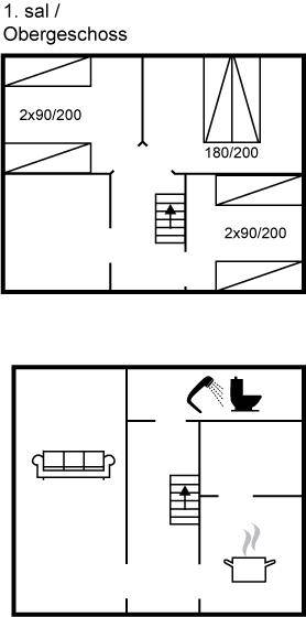 SchlafverhältnisseDie Schlafplätze verteilen sich auf 3 Schlafräume. 2 Schlafplätze in einem Doppelbett. 4 Schlafplätze in Einzelbetten.