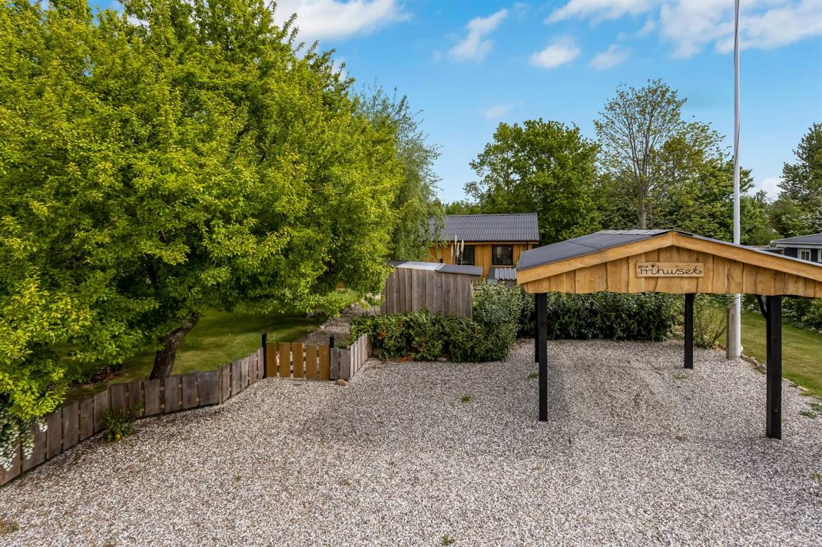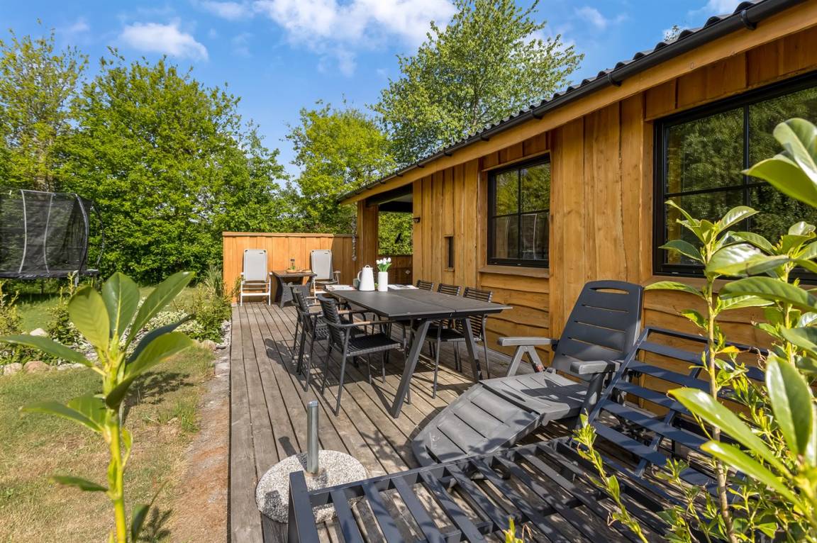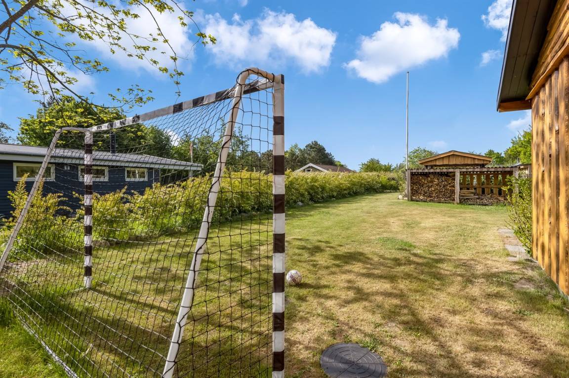 DraußenDie Ferienunterkunft liegt auf einem 1030 m² großen Naturgrundstück. Die Entfernung zum Meer beträgt 700 m. Die nächste Einkaufsmöglichkeit liegt 2400 m entfernt. Es steht ein offenes Terrassenareal zur Verfügung. Außerdem gibt es überdachte Terrasse. Trampolin. Fußballtor. Die Entfernung zu einem Spielplatz beträgt 200 m.Lagerfeuerstelle. Es steht ein Grill zur Verfügung. Es steht ein Carport zur Verfügung. Parkplatz auf dem Grundstück.