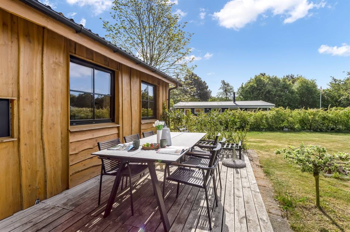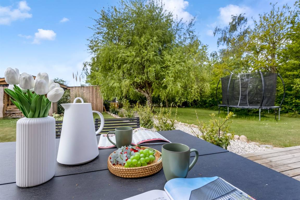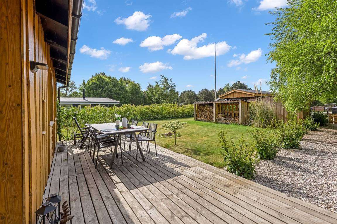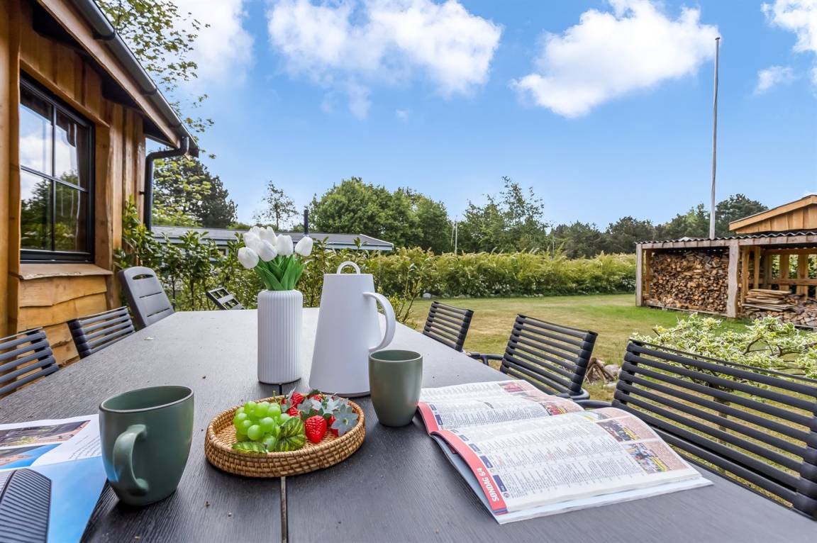 DraußenDie Ferienunterkunft liegt auf einem 1030 m² großen Naturgrundstück. Die Entfernung zum Meer beträgt 700 m. Die nächste Einkaufsmöglichkeit liegt 2400 m entfernt. Es steht ein offenes Terrassenareal zur Verfügung. Außerdem gibt es überdachte Terrasse. Trampolin. Fußballtor. Die Entfernung zu einem Spielplatz beträgt 200 m.Lagerfeuerstelle. Es steht ein Grill zur Verfügung. Es steht ein Carport zur Verfügung. Parkplatz auf dem Grundstück.