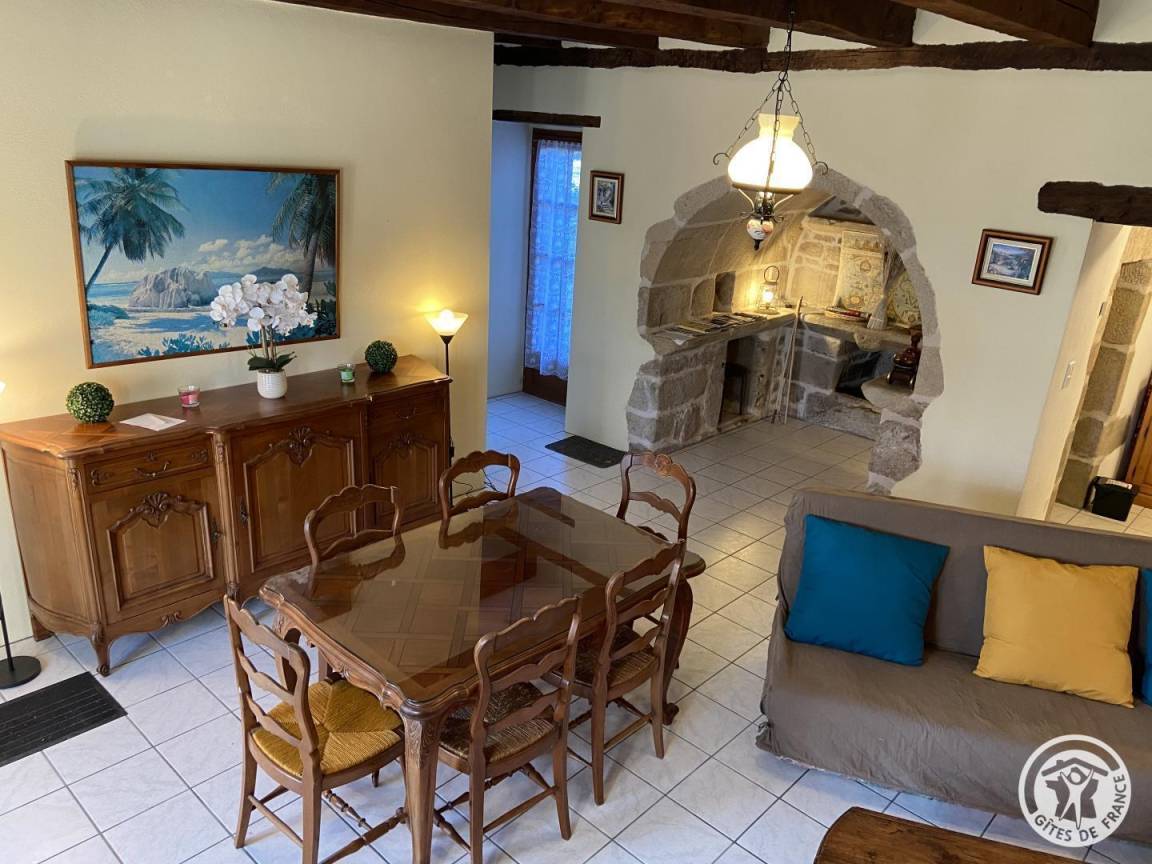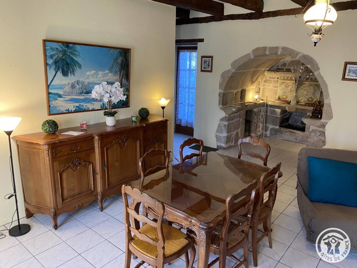 „Malgré une réservation à la dernière minute et pour une courte durée, nous avons été bien accueillis dans une maison en pierre dont les propriétaires ont conservé des éléments de charme: Grande cheminée, souillarde, etc. L'érable du jardin nous a permis de dîner bien au frais. Nous avons très bien dormi: Pas de nuisance sonore dans le hameau. Les propriétaires ont su veiller sur notre tranquillité: Les échanges ont été sympathiques et brefs, quoique le jardin soit mitoyen.“