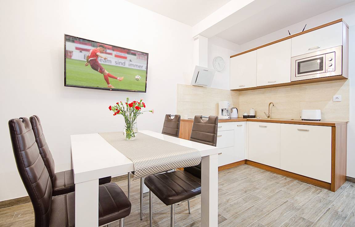 Nebenkosten: Endreinigung auf Wunsch 120 Zl. Kurtaxe. Bettwäsche, Handtücher vorhanden. Zusätzliche Leistungen: Kostenloser Internetzugang über W-Lan. 1 Pkw-Stellplatz im Preis inklusive, 2. Stellplatz 15 Zl./Tag (Bestellung). Kaution 500 Zl. Kinder Babybett/Hochstuhl nur innerhalb der maximalen Personenzahl, jeweils ohne Berechnung (Bestellung). Haustier 15 Zl./Tag, max. 1 Hund (bis 8 kg und 30 cm Schulterhöhe).Räume & Aufteilung