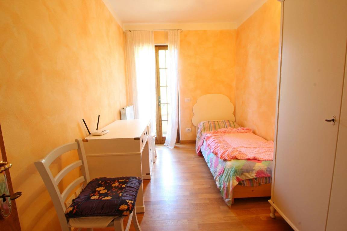 Schlafzimmer 1: Doppelbett (Breite: 1.6m, Länge: 1.9m), Ausgang auf den Balkon.